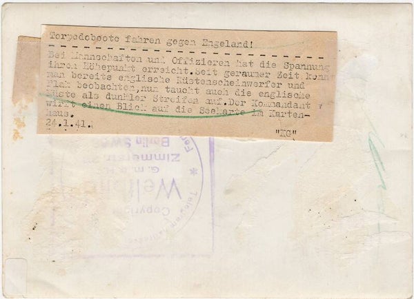 Original WW2 German Press Photo - KM Kriegsmarine officers in a Torpedoboote to England (1941)
