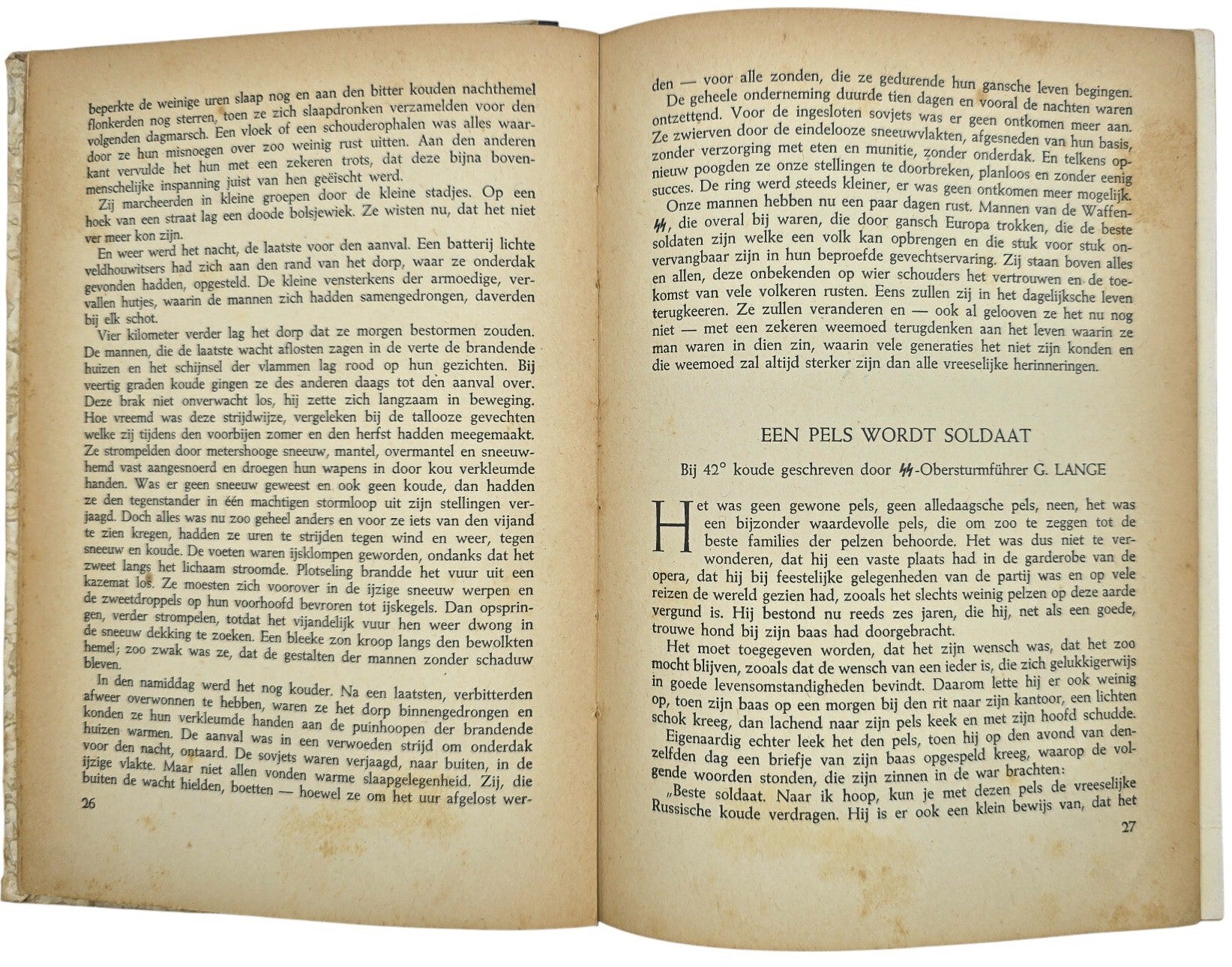 Boek over Nederlandse vrijwilligers voor de Waffen SS aan het oostfront. Uitgegeven door de NSB uitgeverij Roskam. De rug is een beetje los.