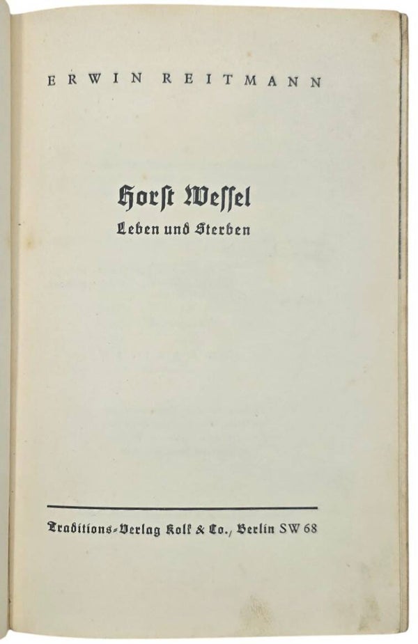 Original WW2 German NSDAP Book - Horst Wessel, Leben und Sterben, Erwin Reitmann (1936)