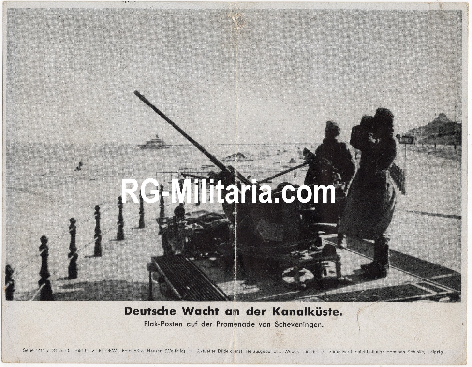Original WW2 German Bilderdienst Press Photo - Flak guarding the Kanalküste at Scheveningen, Holland (1940)