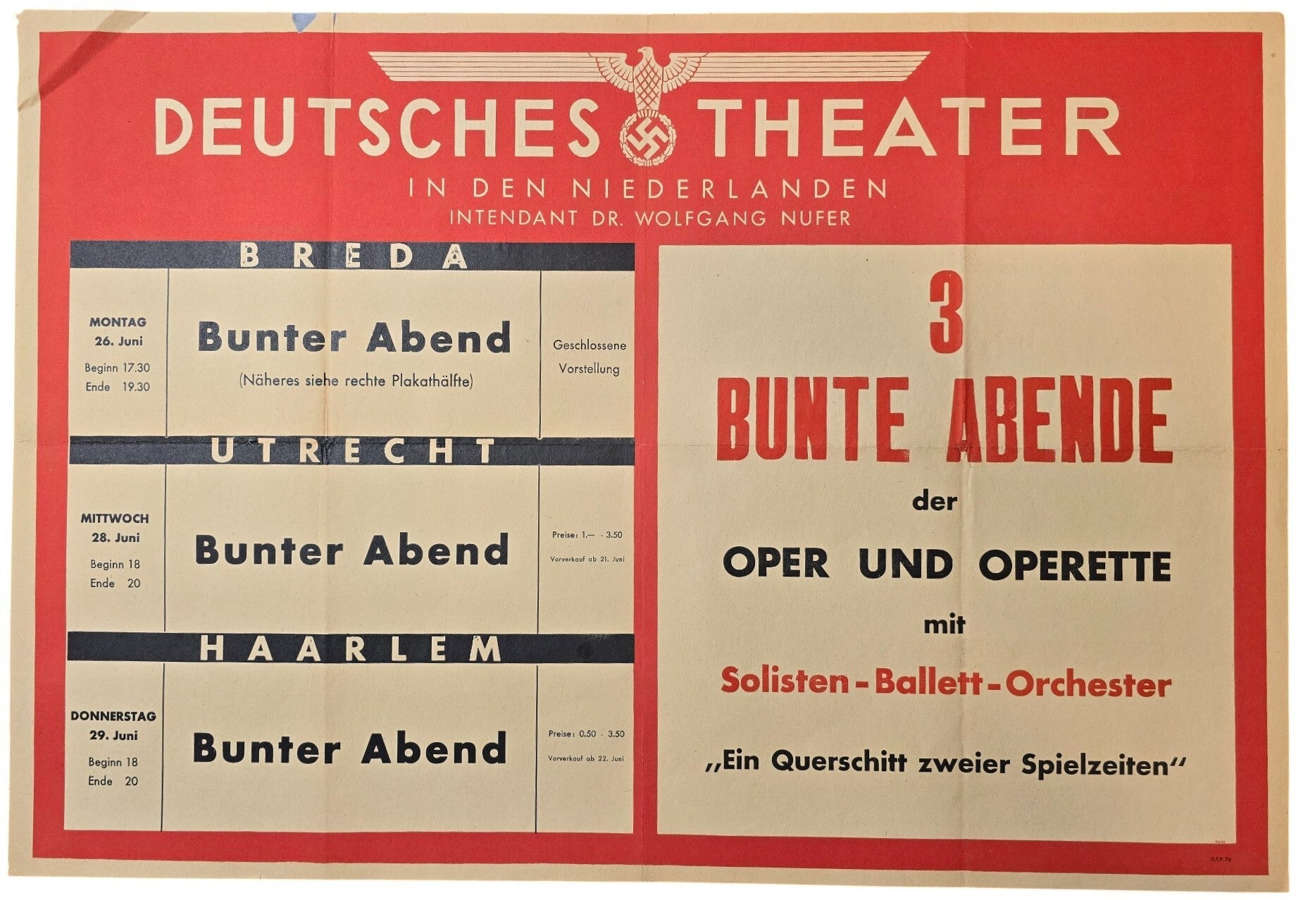 Original WW2 Dutch German Poster - Deutsches Theater in den Niederlanden movie poster, Breda, Utrecht, Haarlem (1944)