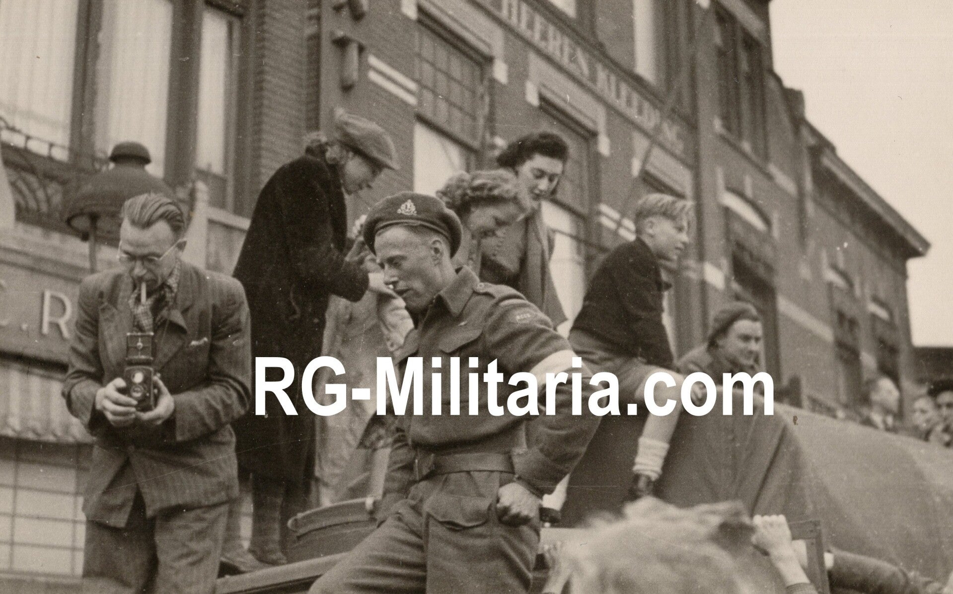 Originele Wo2 Nederlandse Bevrijding Foto - RCCS Britse militair tijdens de bevrijding van Amersfoort, Nederland (1945)