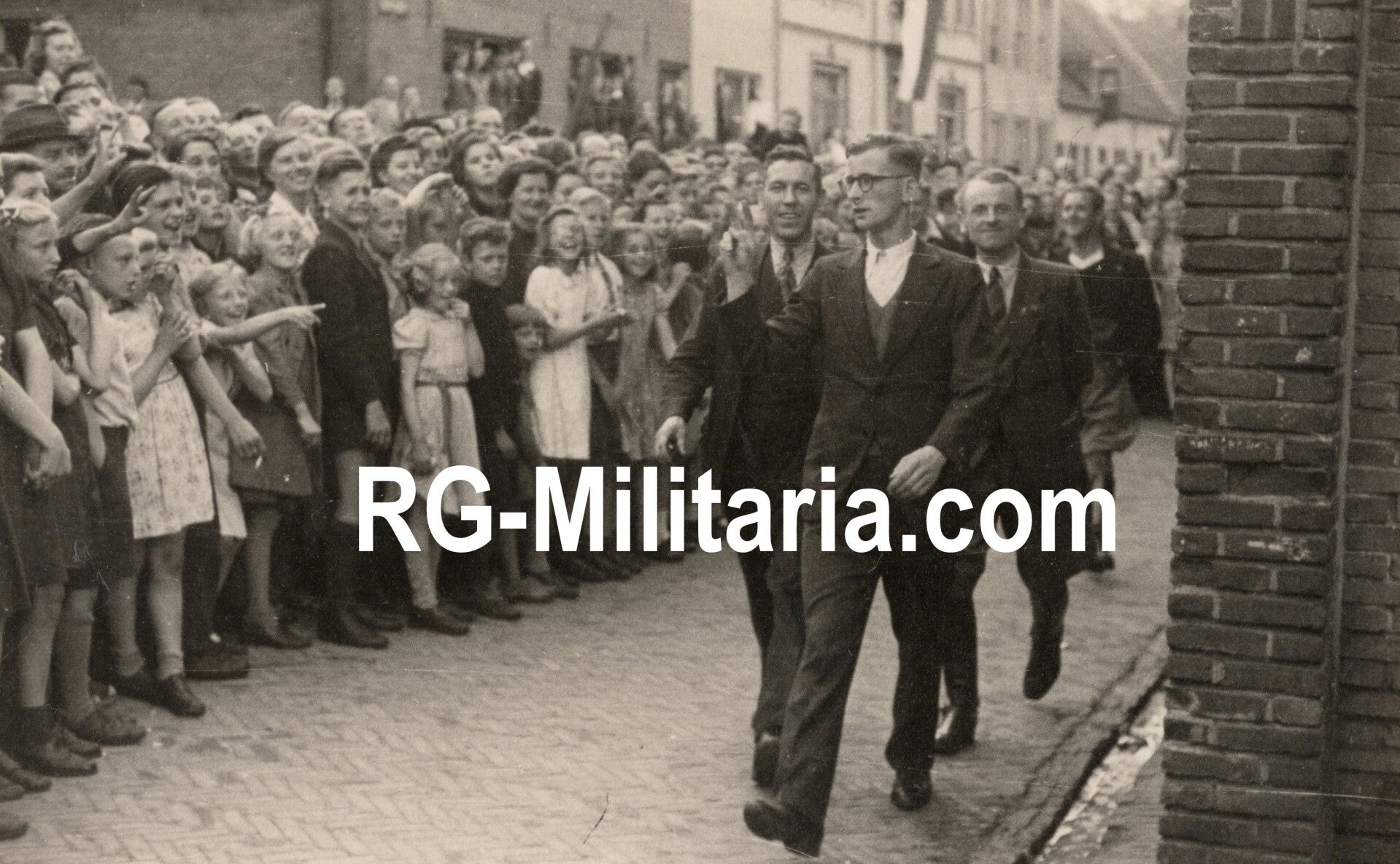 Original WW2 Dutch Liberation Photo - V sign arrest of a collaborator (?) during the liberation of Amersfoort, Holland (1945)