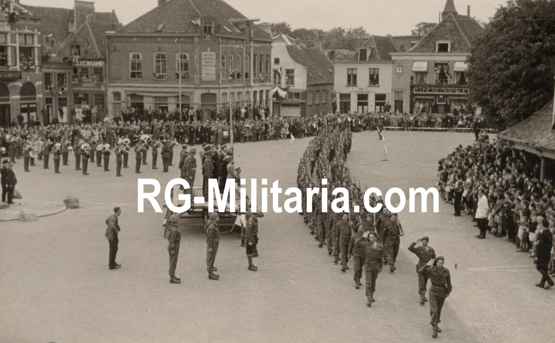 Original WW2 Dutch Liberation Photo - British military parade along the mayor of Amersfoort, Holland (1945)