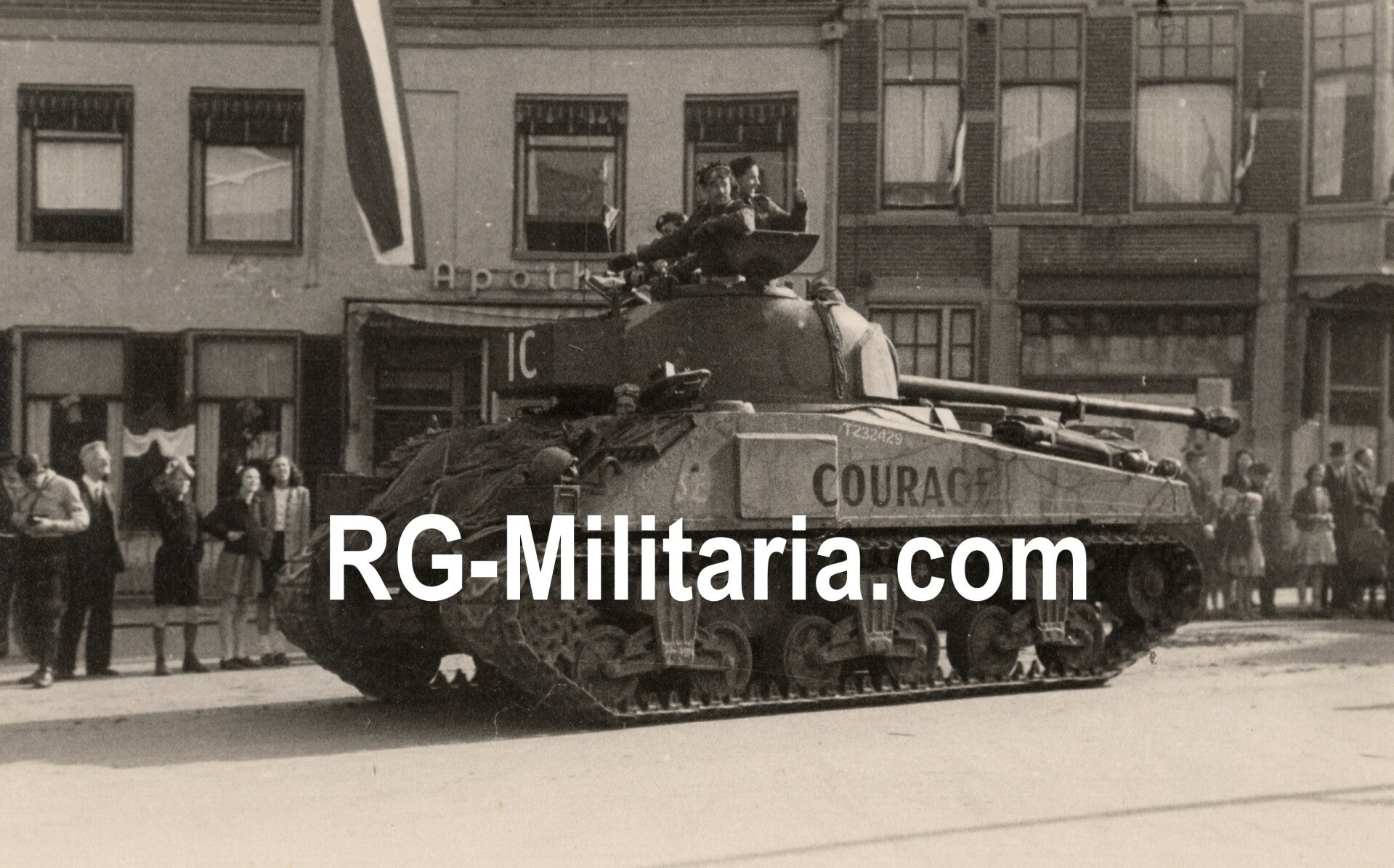 Original WW2 Dutch Liberation Photo - Allied Sherman Firefly tank arrives in Amersfoort during its liberation, Holland (1945)4