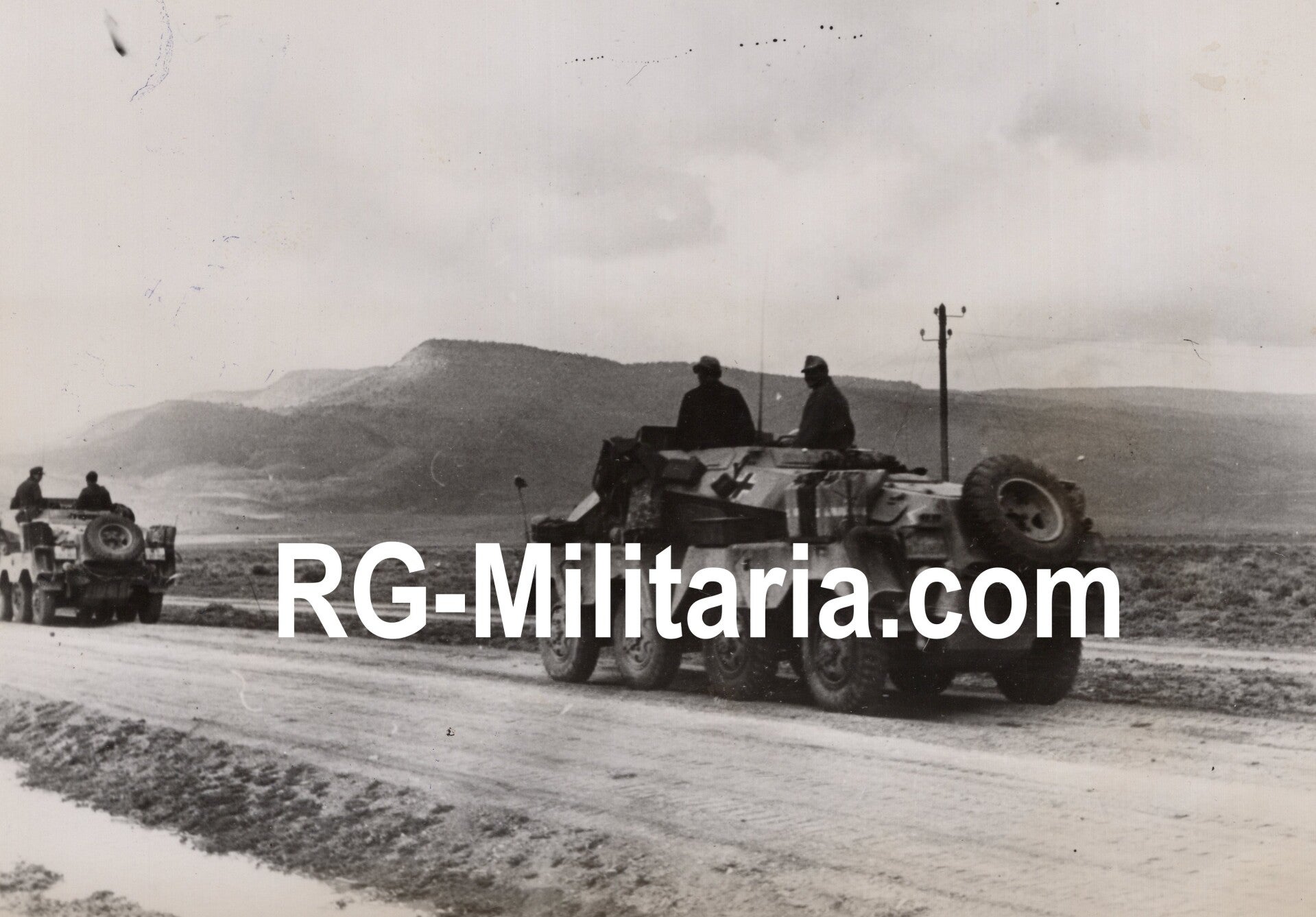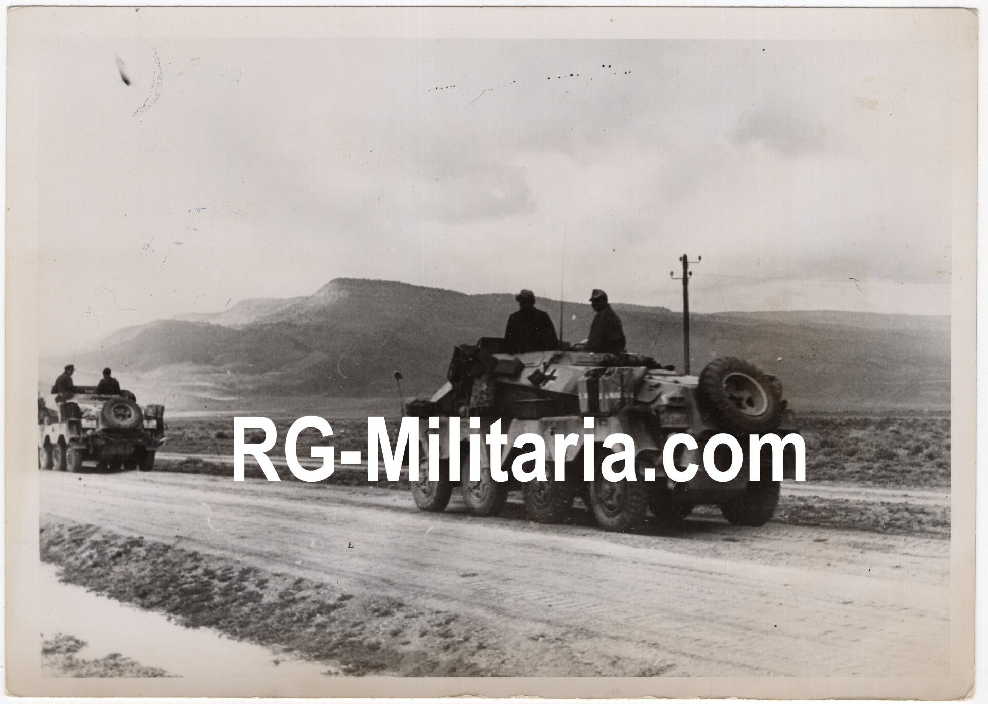 Original WW2 German Press Photo - German abteilung with a sdkfz 232 panzer truck at the Tunis front, Afrika (1943)
