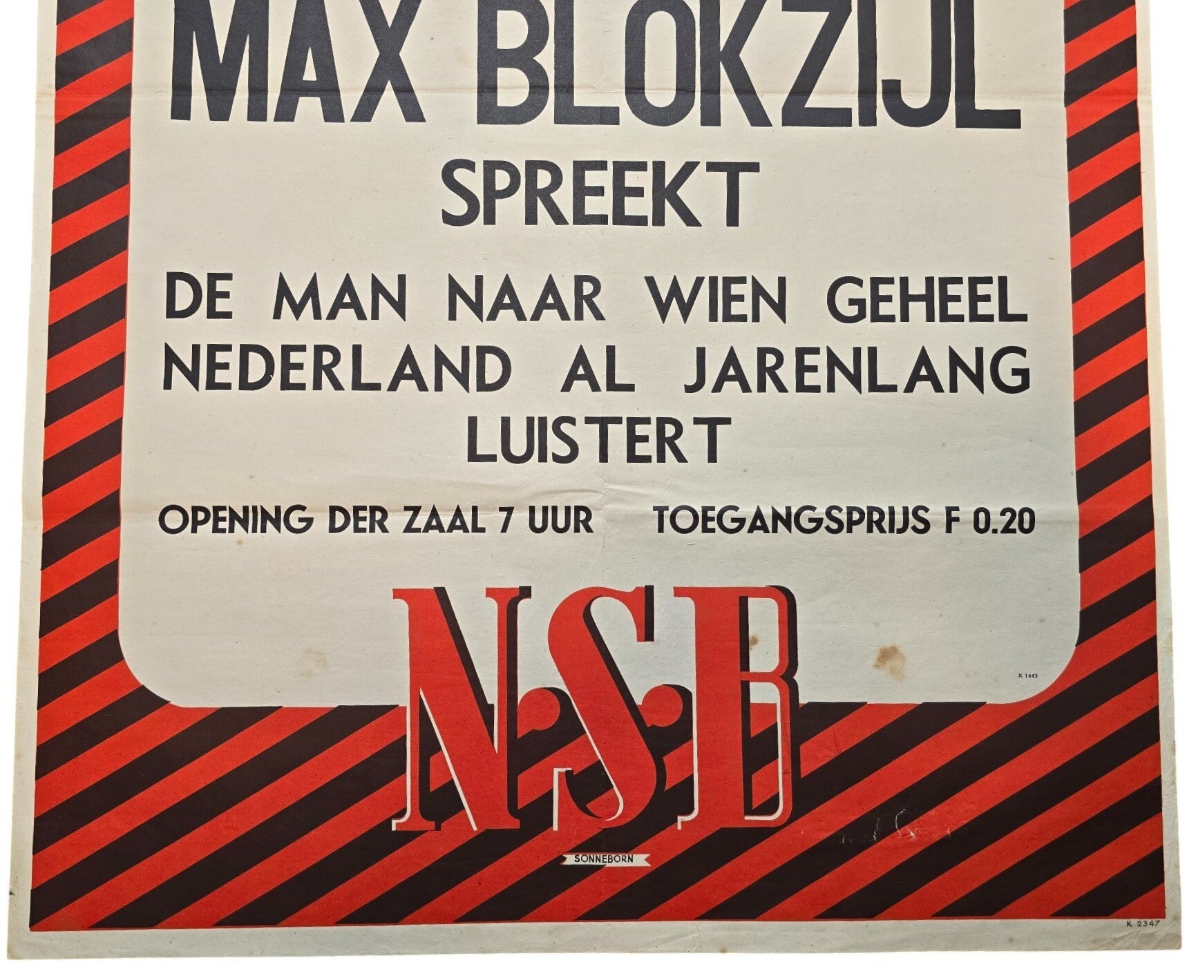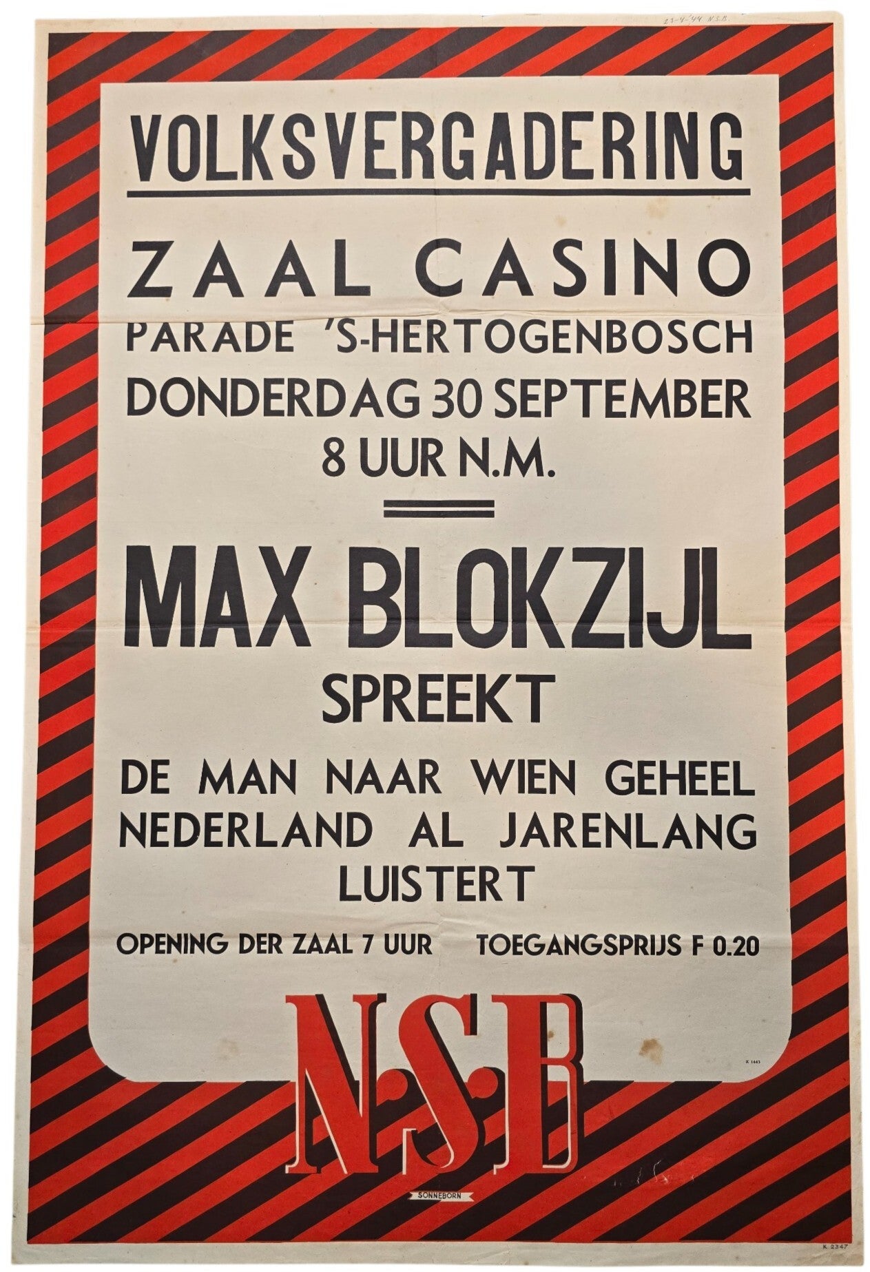 Original WW2 Dutch Collaboration NSB Poster - Max Blokzijl gathering Casino Den Bosch (1944)