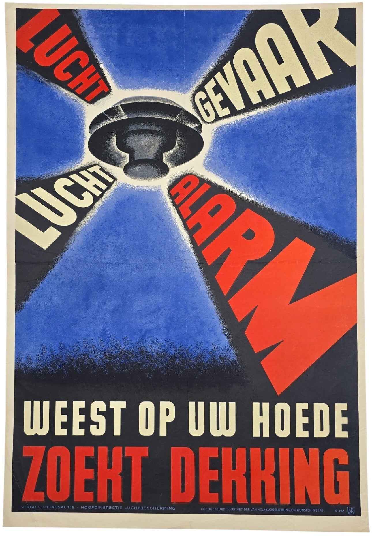 Originele Wo2 Nederlandse Poster - Luchtgevaar, Luchtalarm, Weest op uw hoede zoekt dekking (1944)
