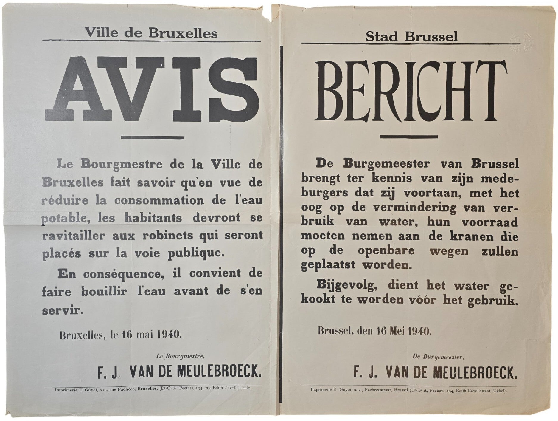 Original WW2 Belgian Poster - Use of water, Brussels, May (1940)