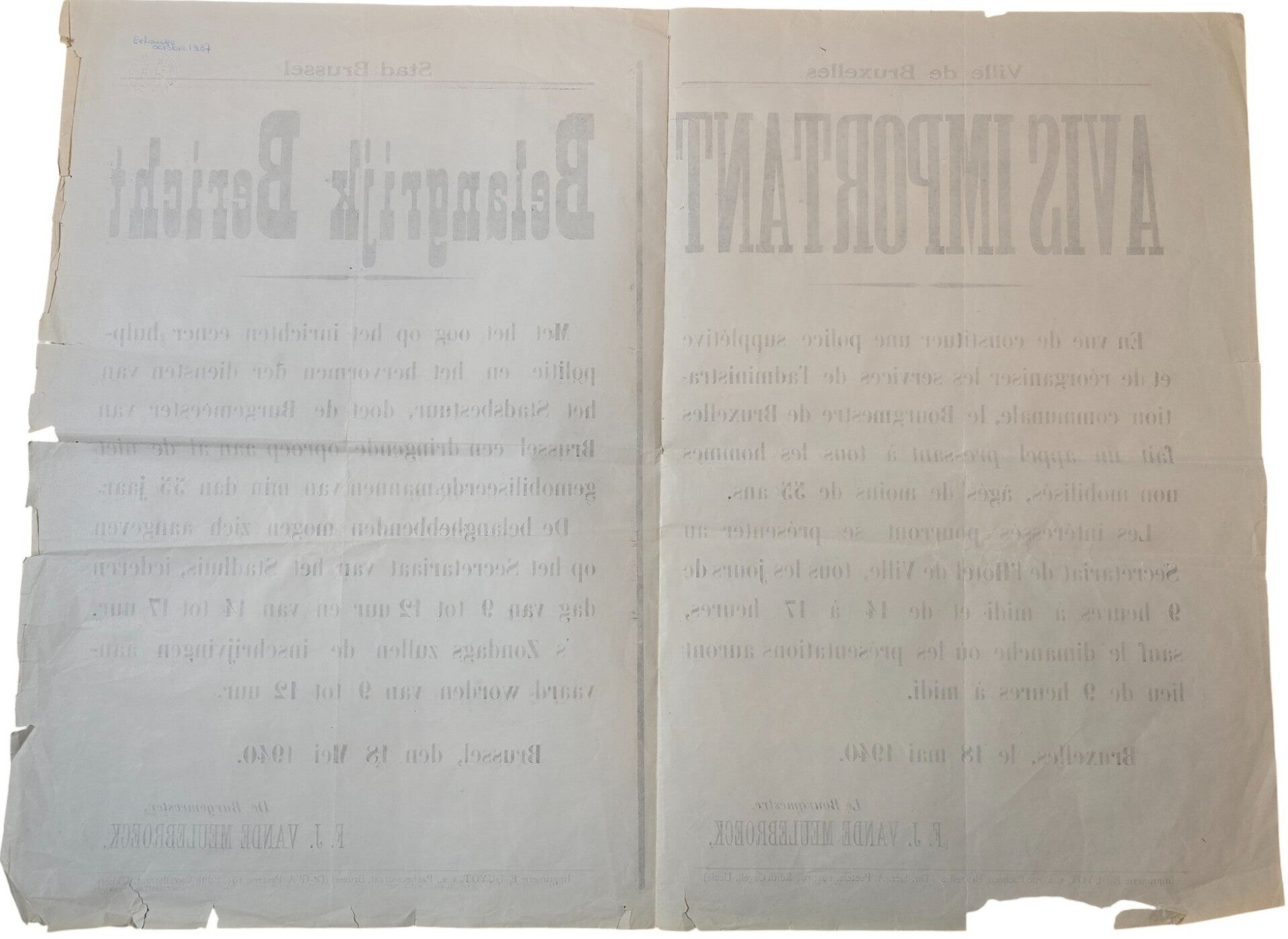 Original WW2 Belgian Poster - Call for all mobilized men, Brussels, May (1940)