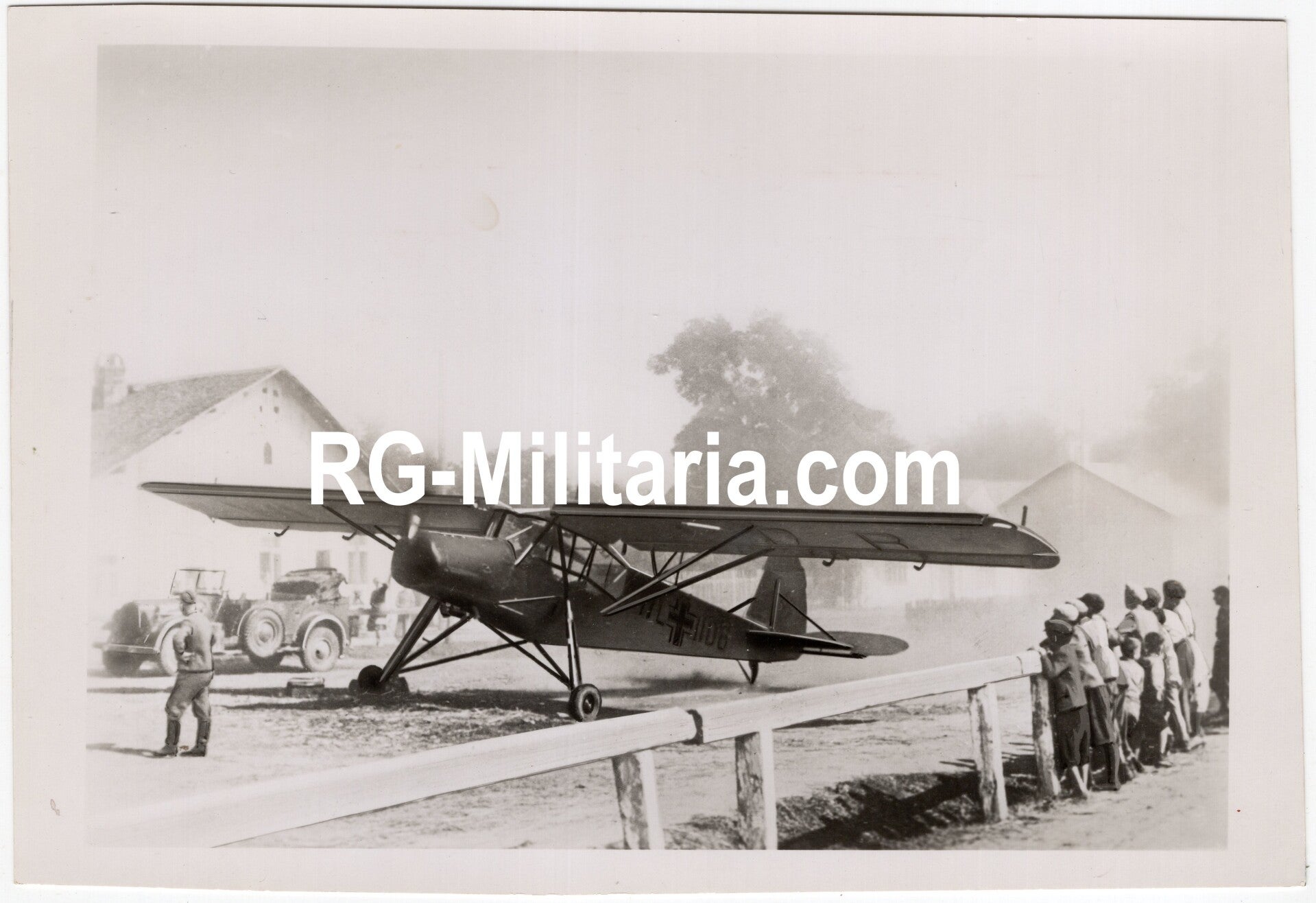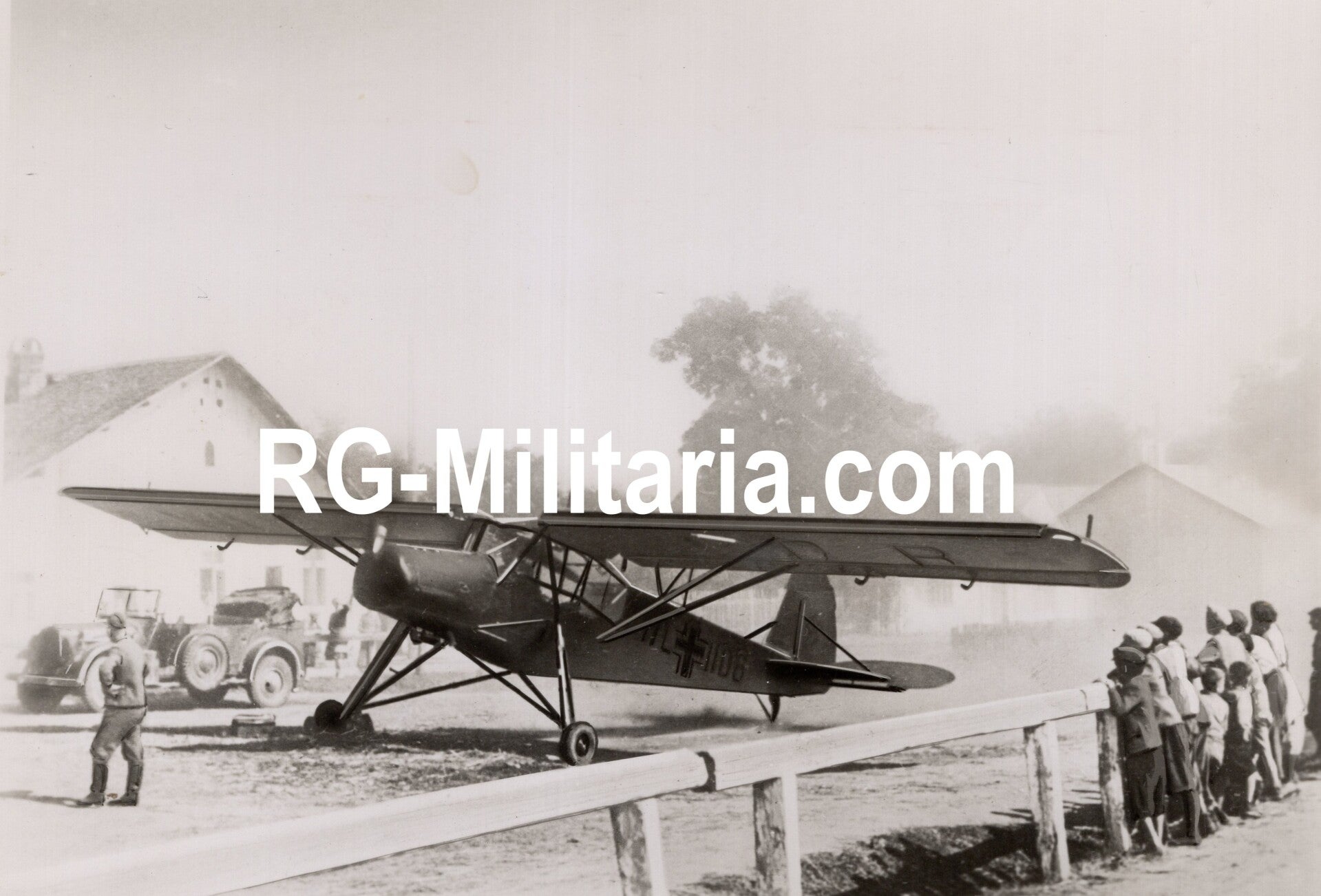 Originele Wo2 Duitse Persfoto - Fieseler Storch vliegtuig land in een Pools dorp (1939)