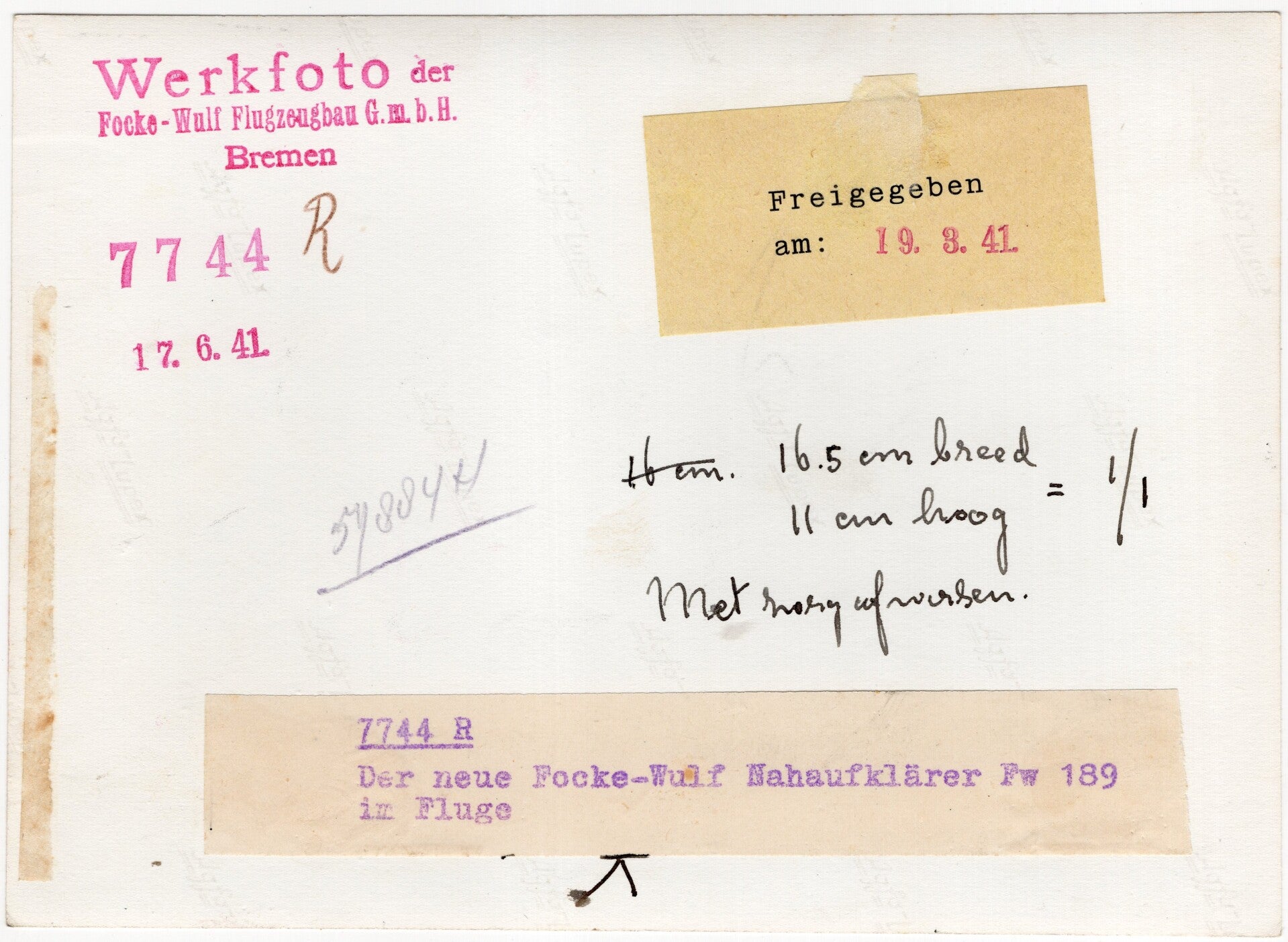 Originele Wo2 Duitse Luftwaffe Foto - Focke Wulf Fw 189 vliegtuig in de lucht (1941)