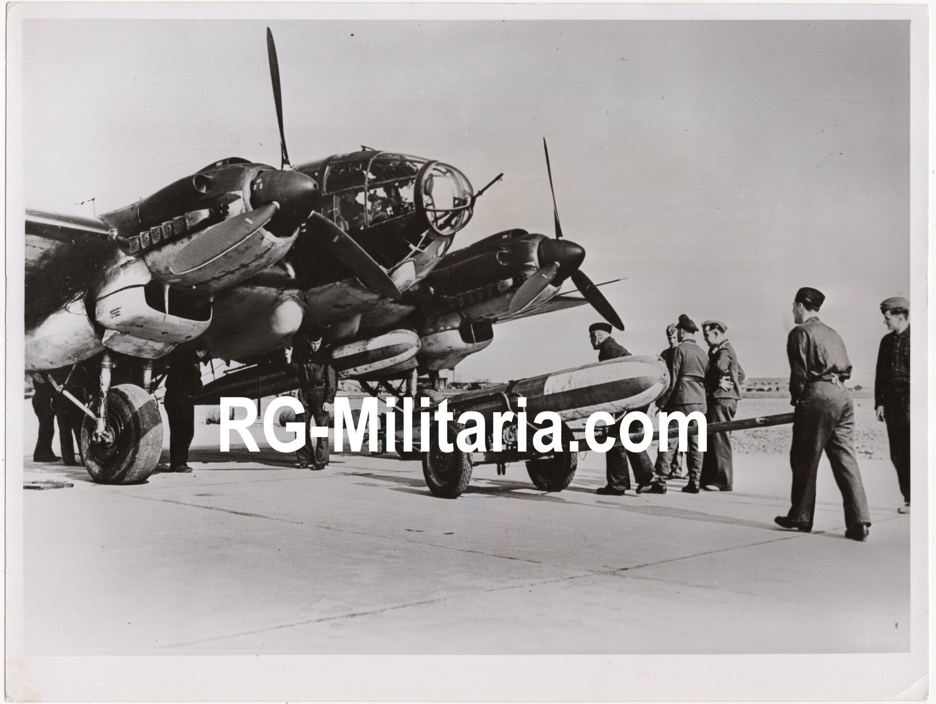 Original WW2 German Press Photo - Luftwaffe airplane Heinkel He 111 with bombs (1941)