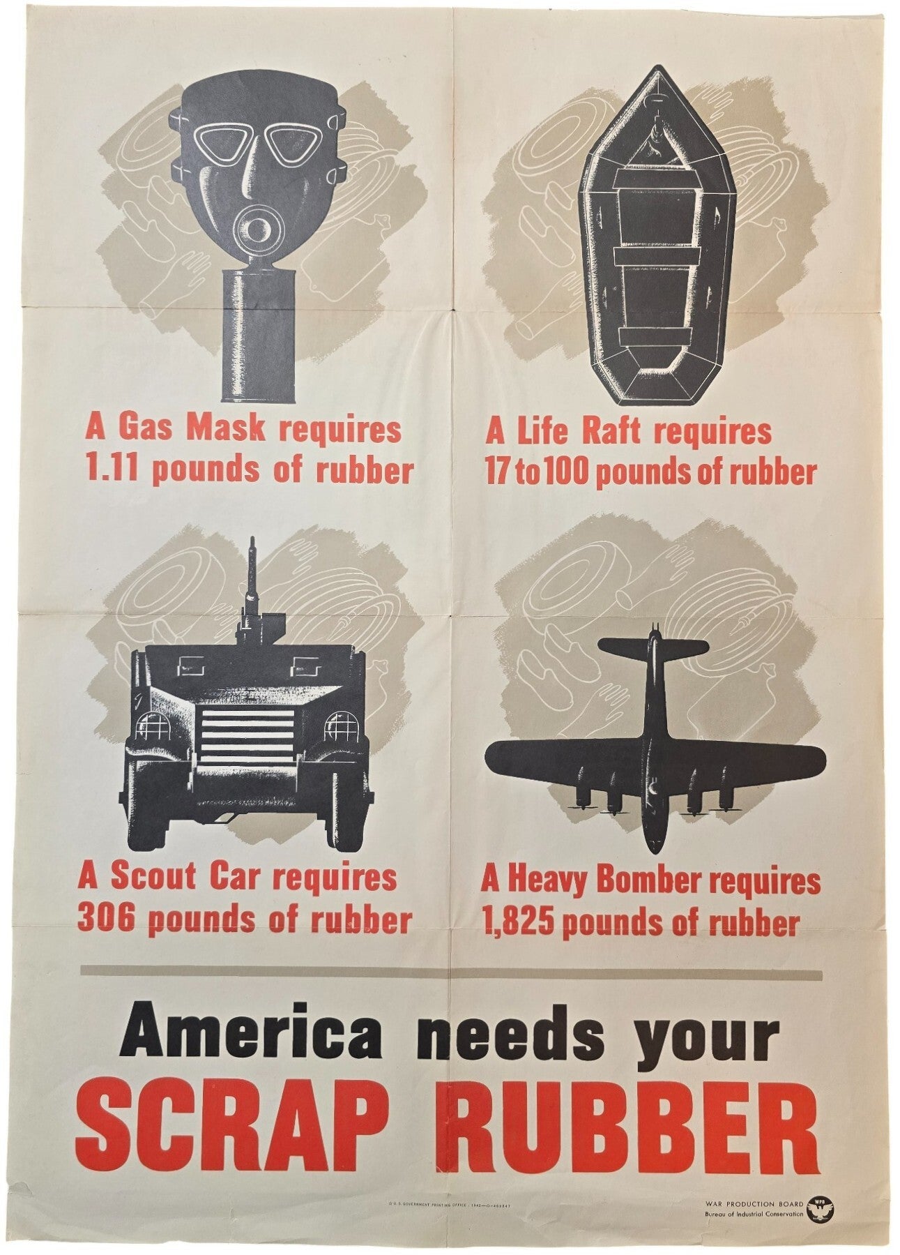 Original WW2 US Poster - America needs your scrap rubber (1942)