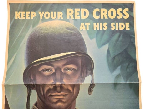 Originele Wo2 Amerikaanse Poster - Keep your Red Cross at his side, Give + (1944)