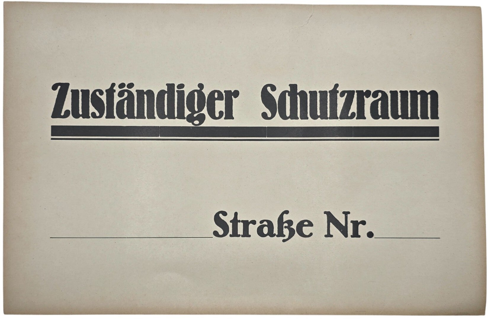 Original WW2 German Sign - Carton Sign Zuständiger Schutzraum Luftschutz