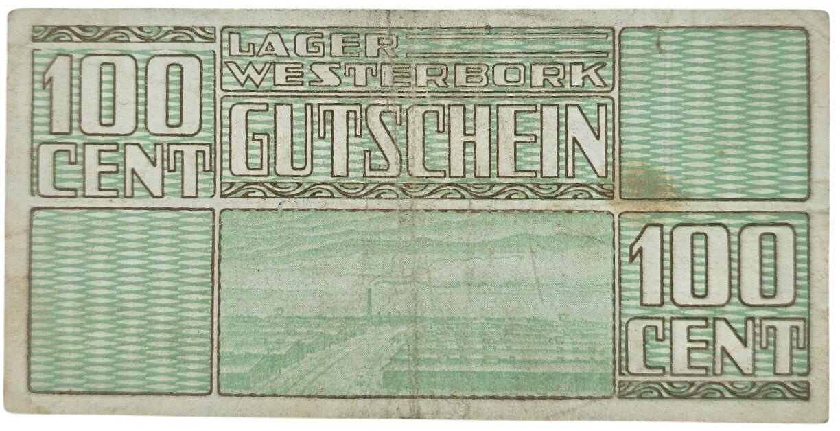 Original WW2 Dutch Document - Concentration Camp Westerbork 100 cent BB (1944)