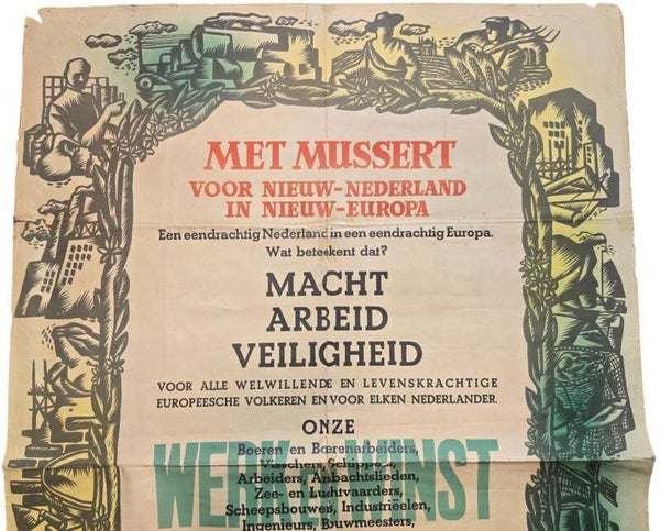 Original WW2 Dutch Collaboration NSB Poster - Met Mussert voor Nieuw-Nederland in Nieuw-Europa (1942)