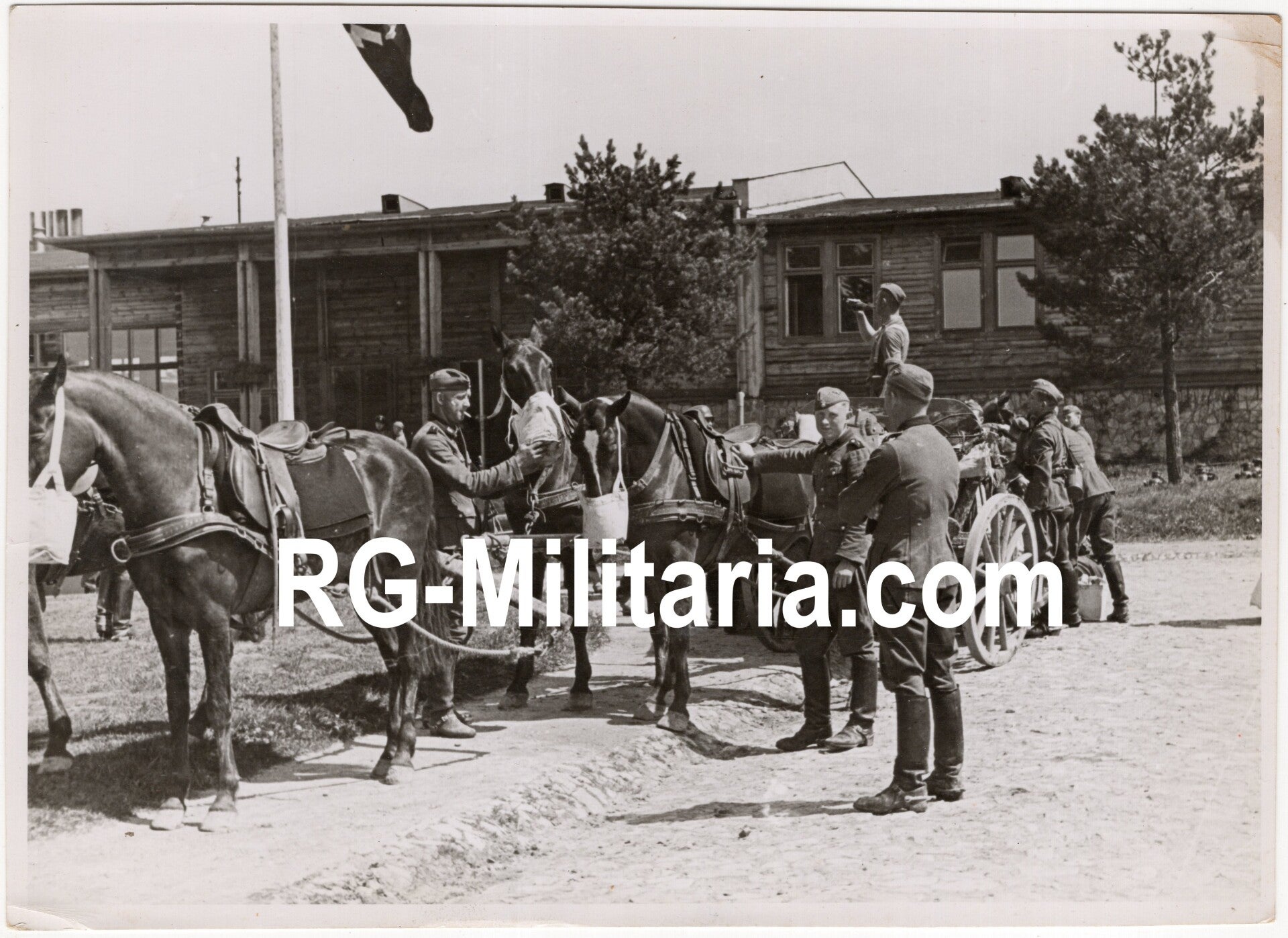 Original WW2 German Waffen SS Press Photo - SS-Kavallerie-Regiment 2 Cavalry feeding their horses