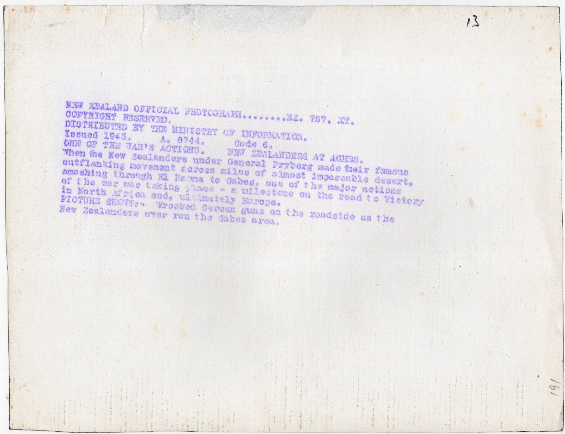Originele Wo2 Britse Persfoto - Nieuw Zeelanders nemen Gabes, Tunesië over, Afrika (1943)