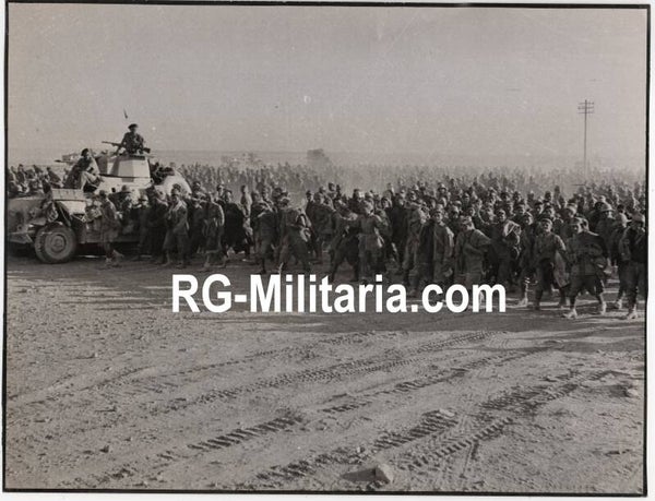 Originele Wo2 Britse Persfoto - Duitse POW Militairen gevangengenomen in Noord-Afrika