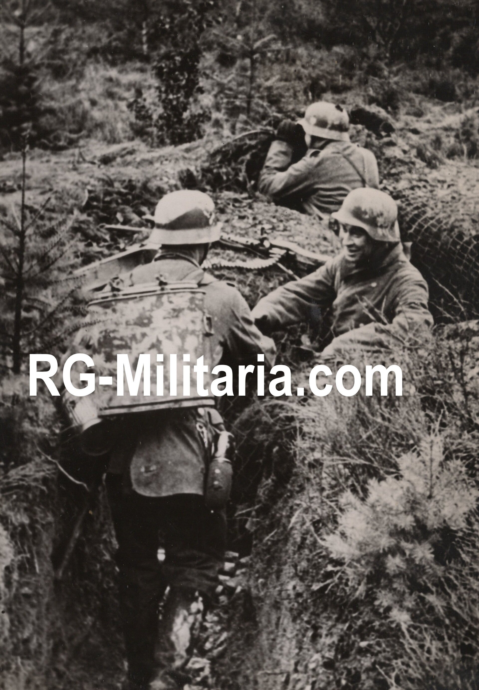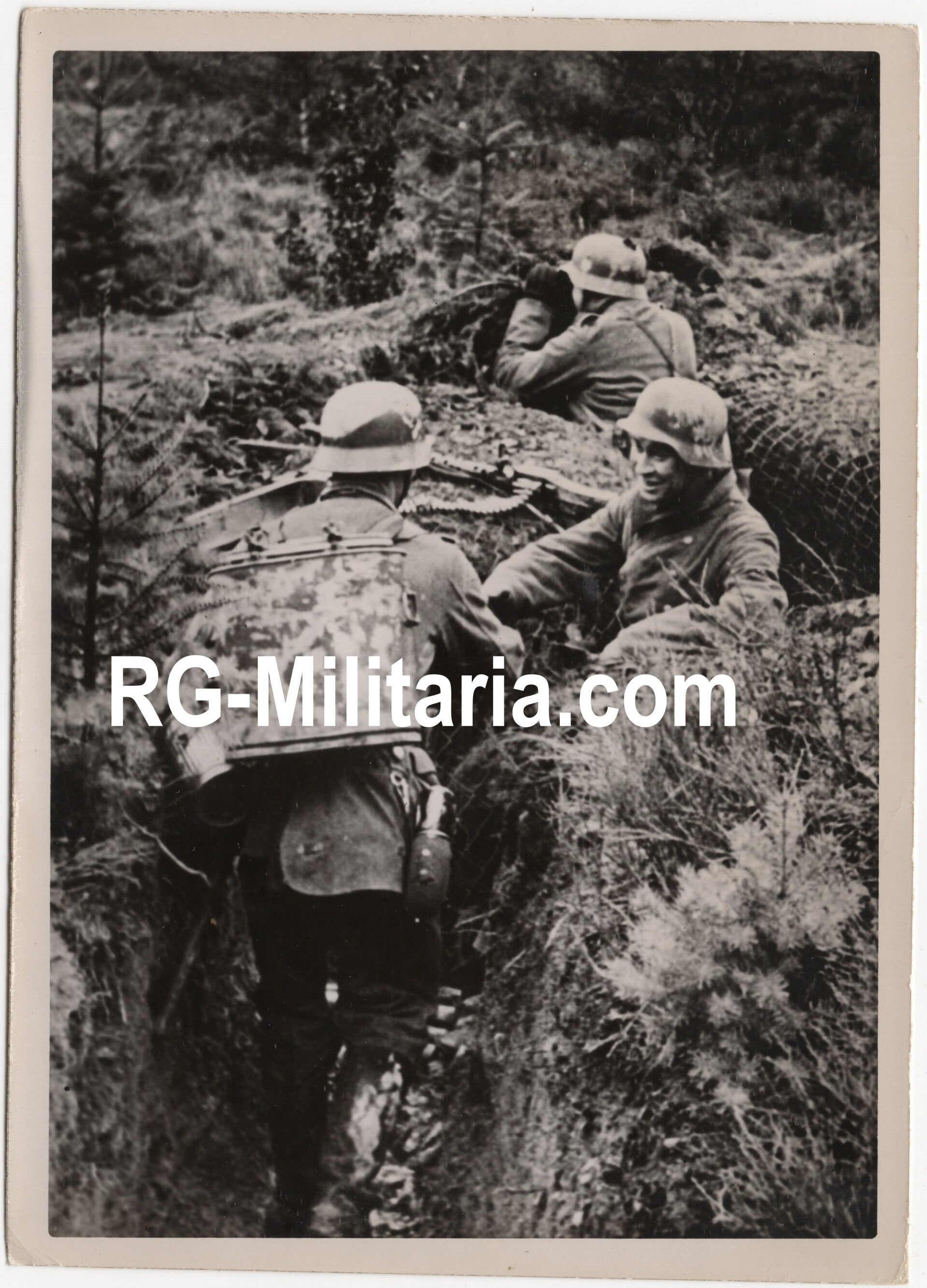 Originele Wo2 Duitse Persfoto - Eten brenger geeft eten aan de MG stelling (1939)