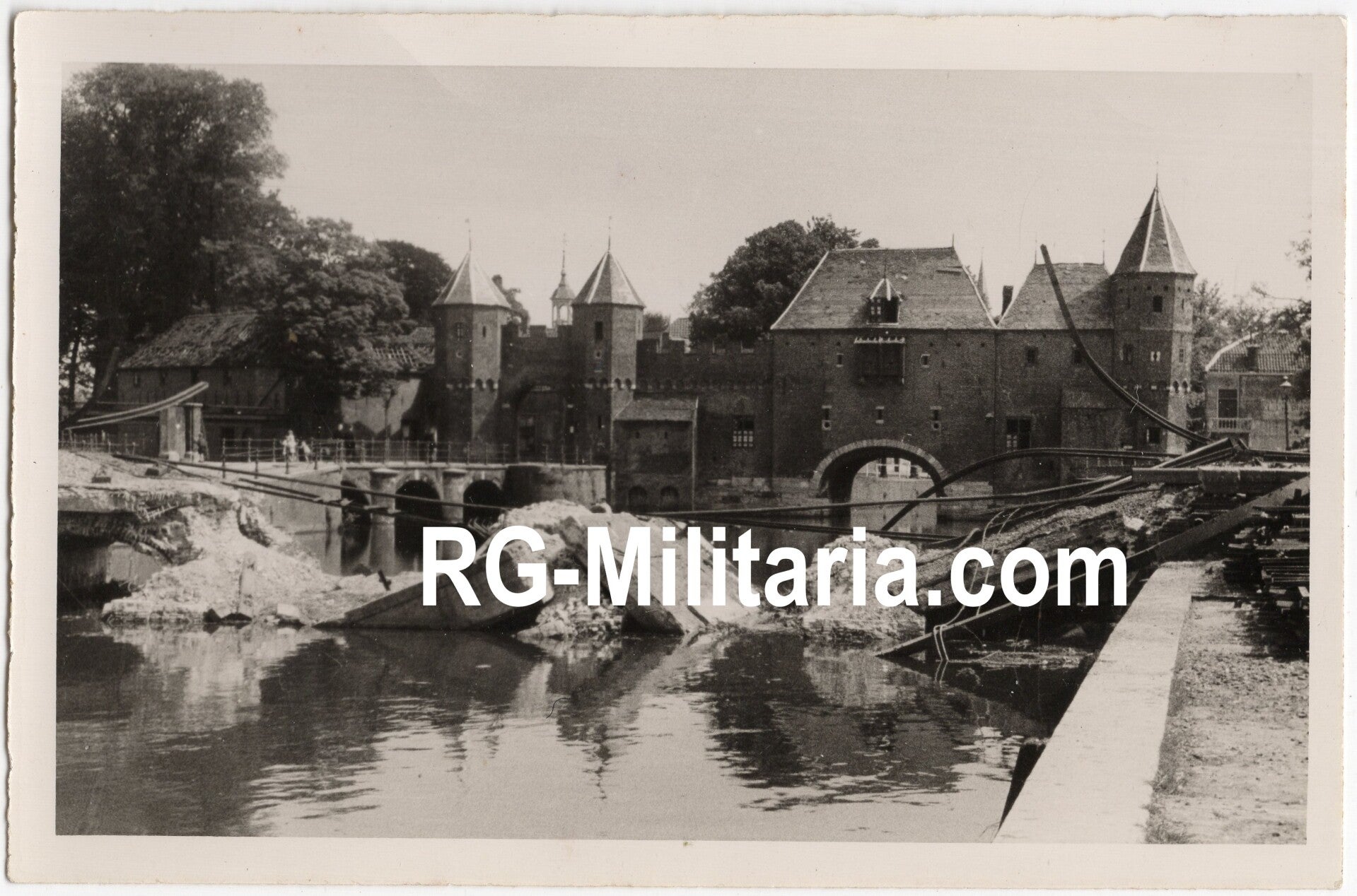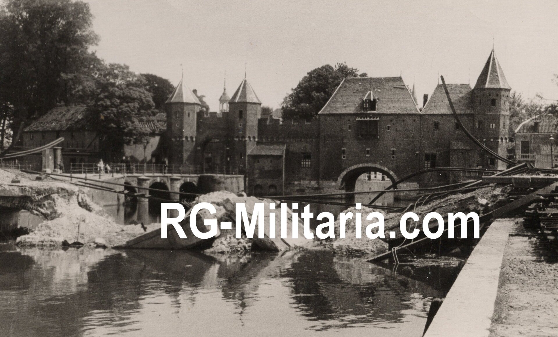 Originele Wo2 Nederlandse Bevrijding Foto - Verwoeste muur voor de stadspoort van Amersfoort tijdens de bevrijding van de stad, Nederland (1945)