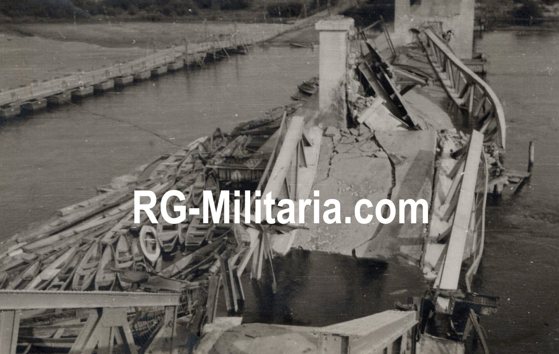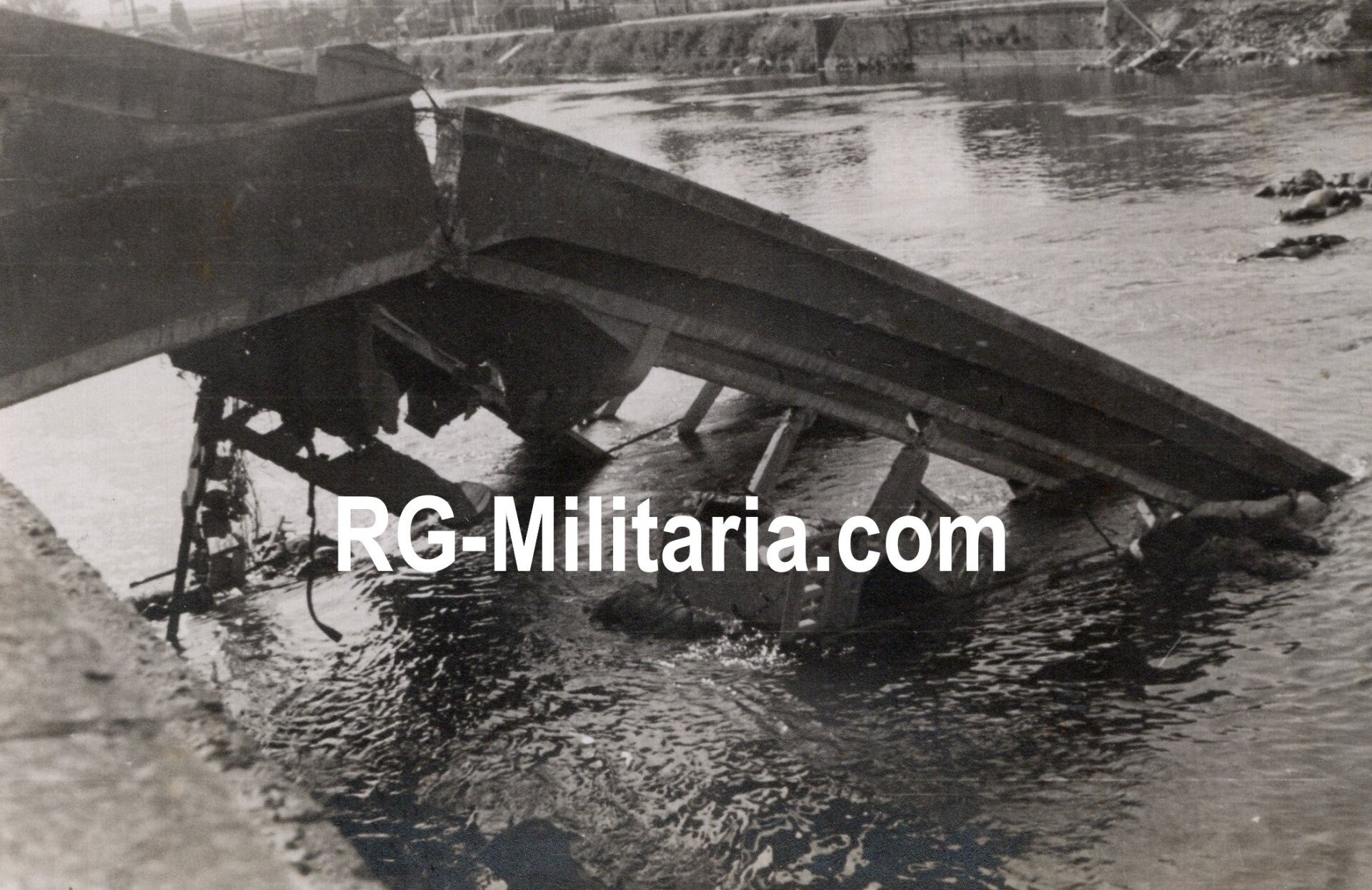 Originele Wo2 Duitse Foto - Vernietigde bruggen bij Meerssen, Limburg, Nederland, mei (1940)
