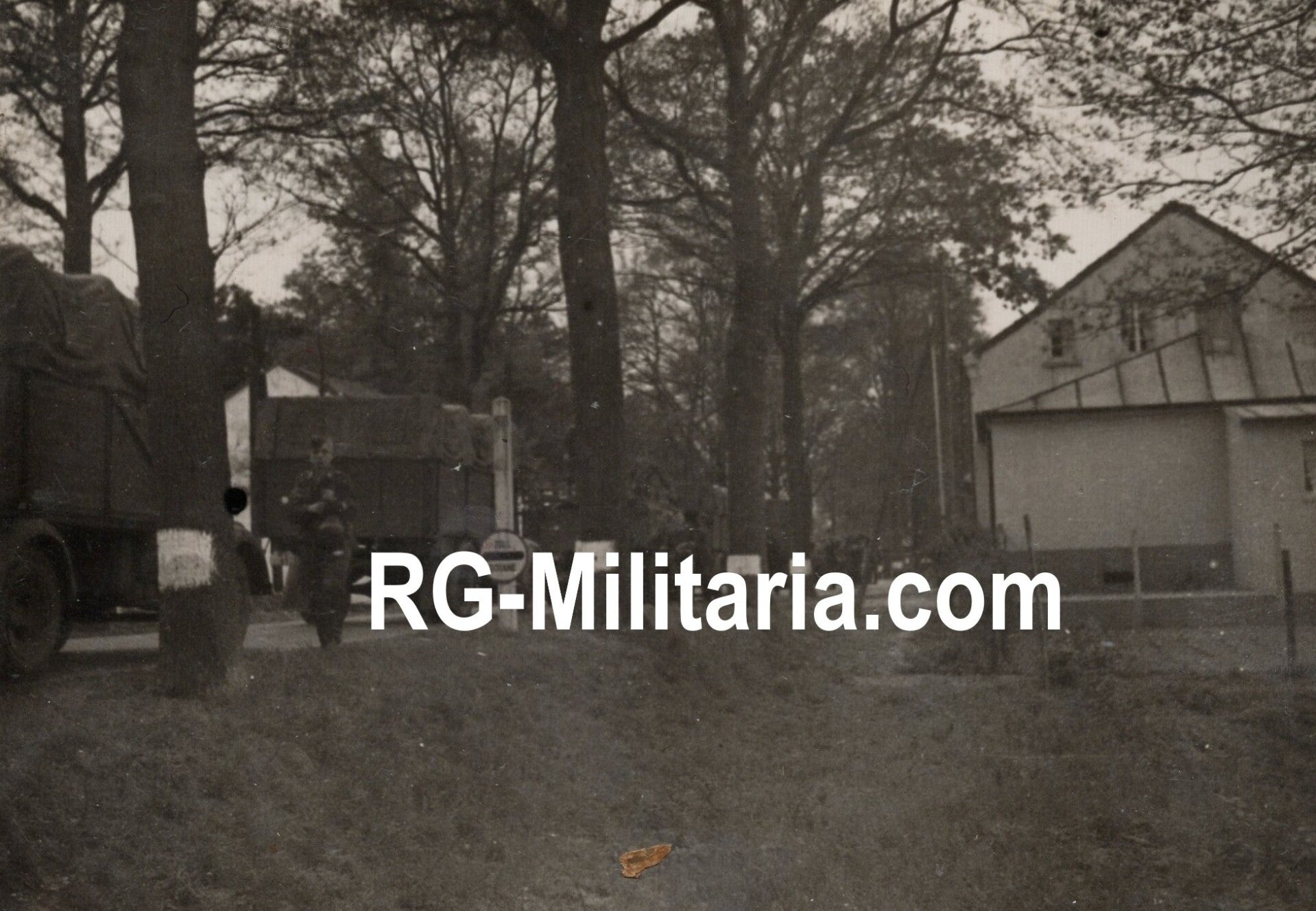 Original WW2 German Photo - German soldiers and trucks crossing the Dutch border, Holland, May (1940)