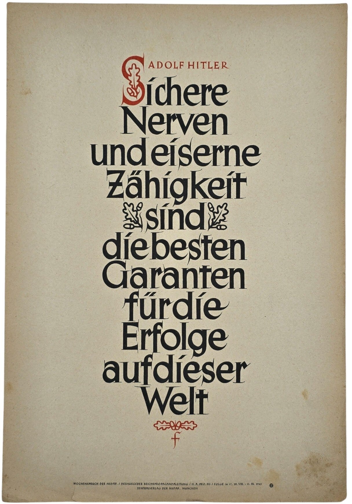 Originele Wo2 Duitse Poster - NSDAP Wochenspruch folge 30, Adolf Hitler (1943)