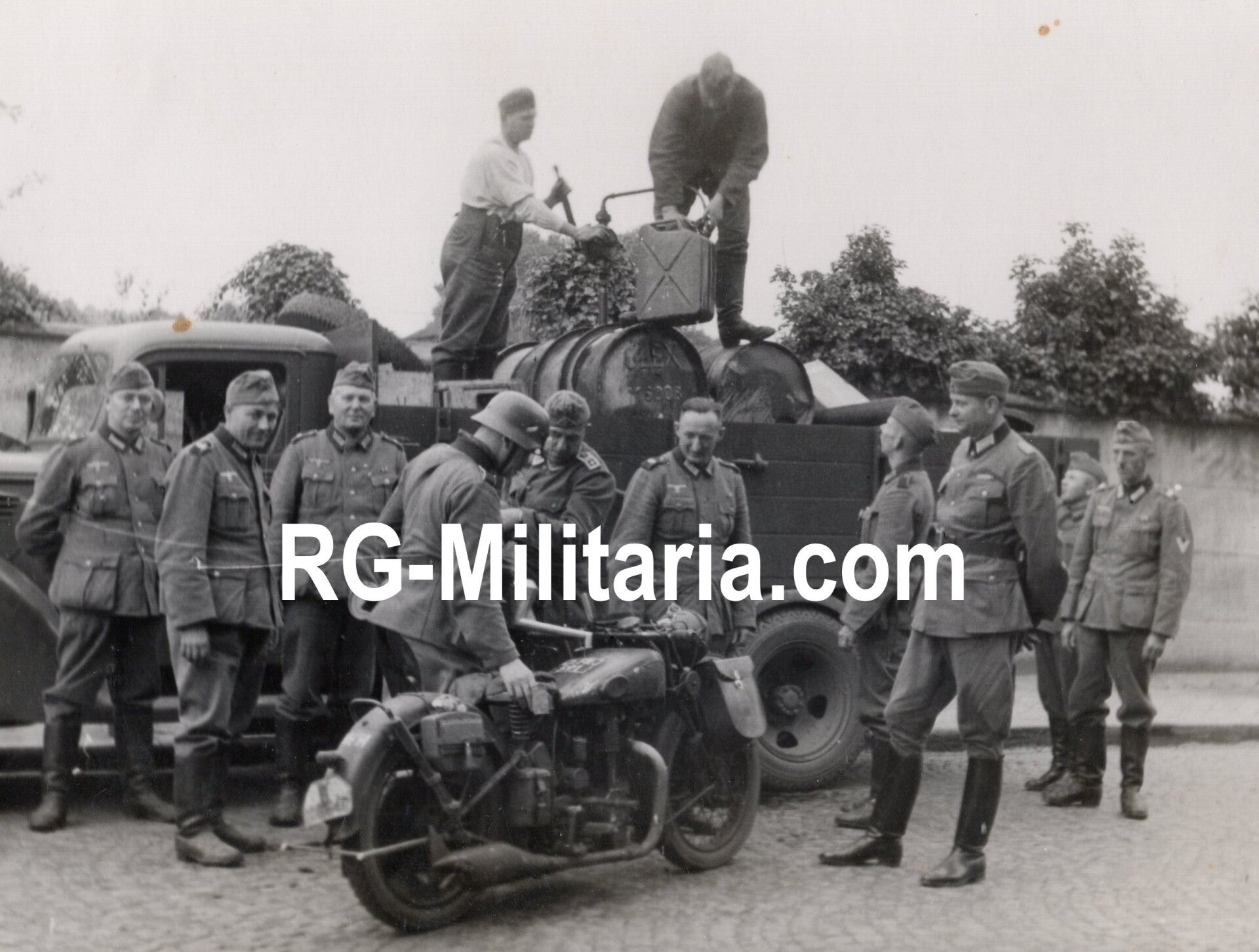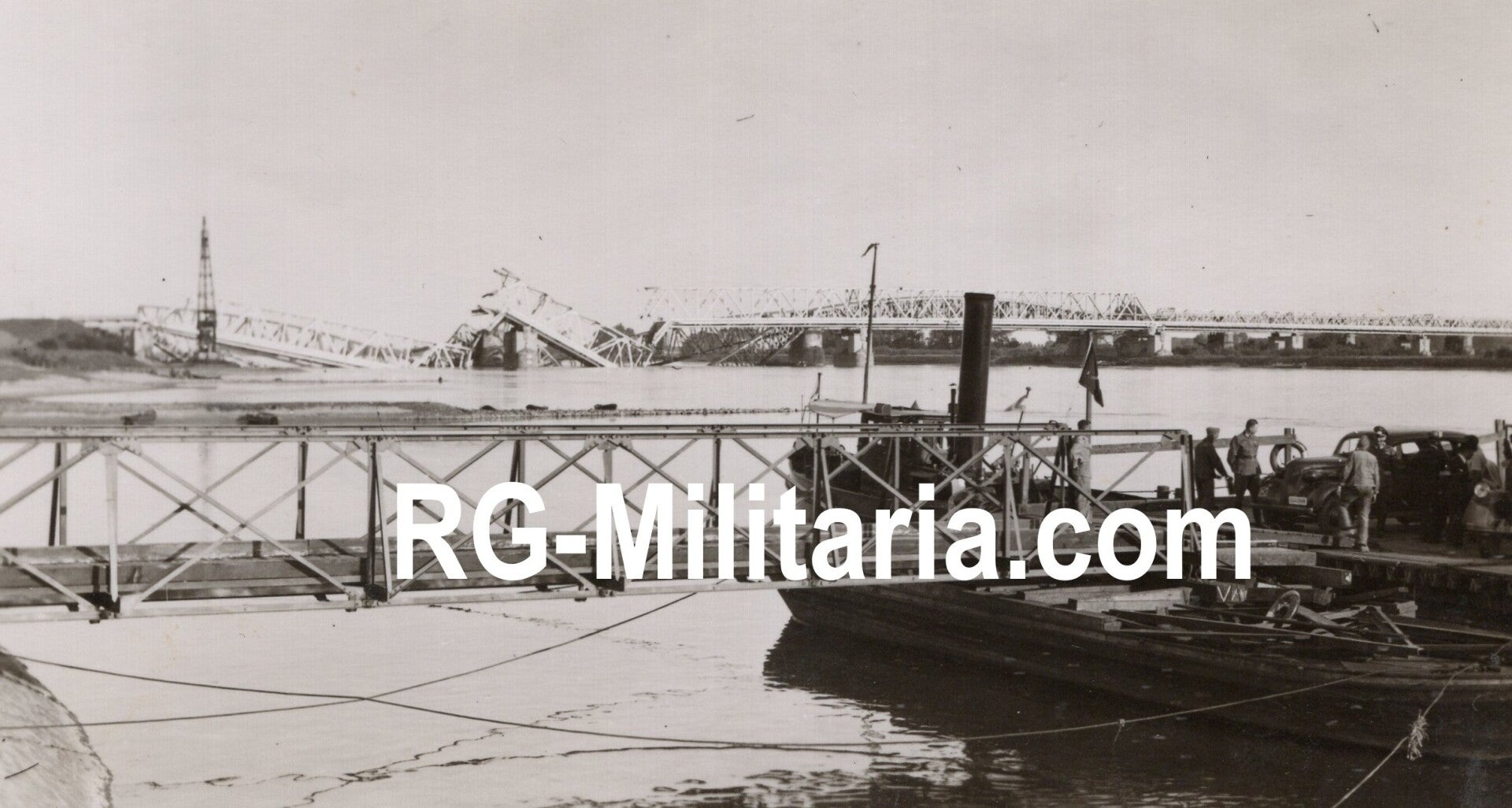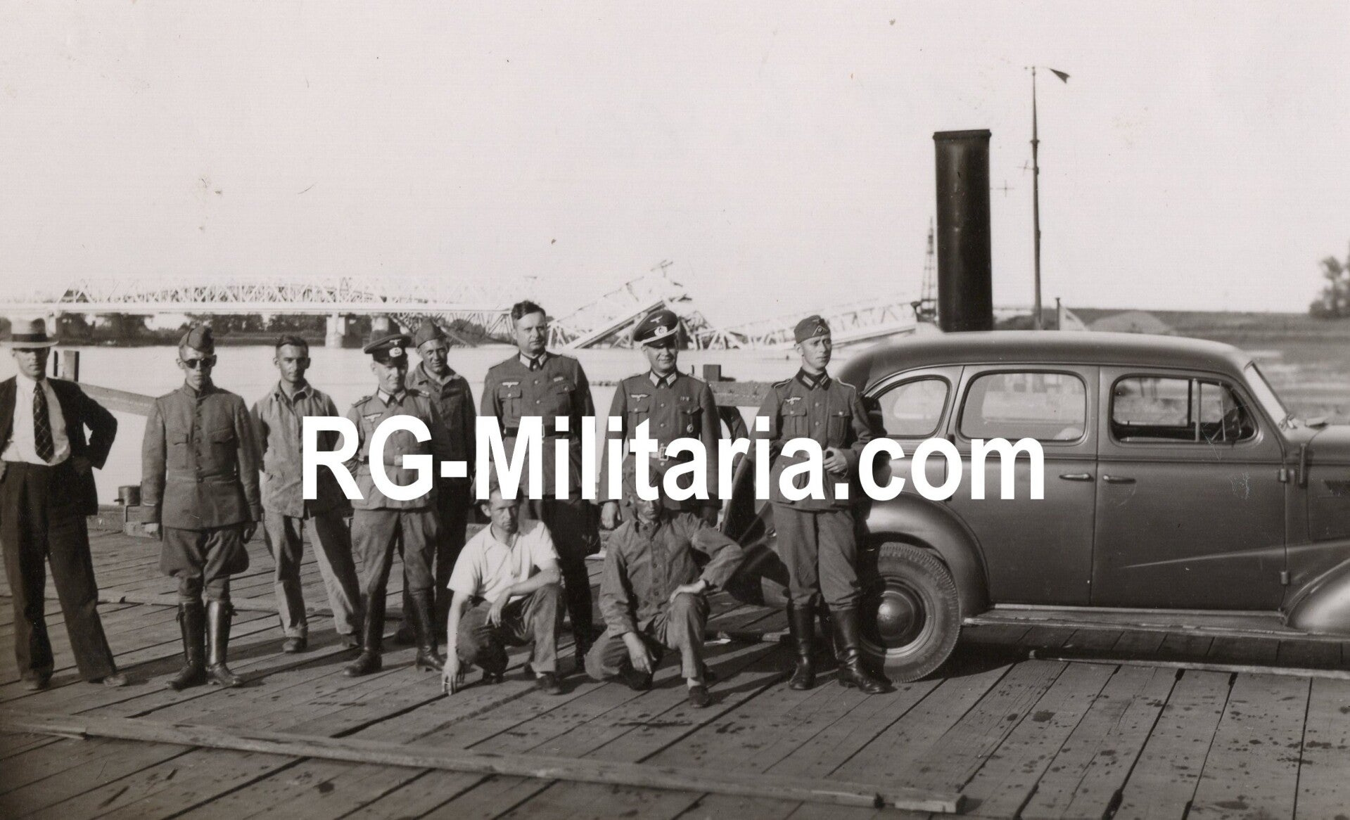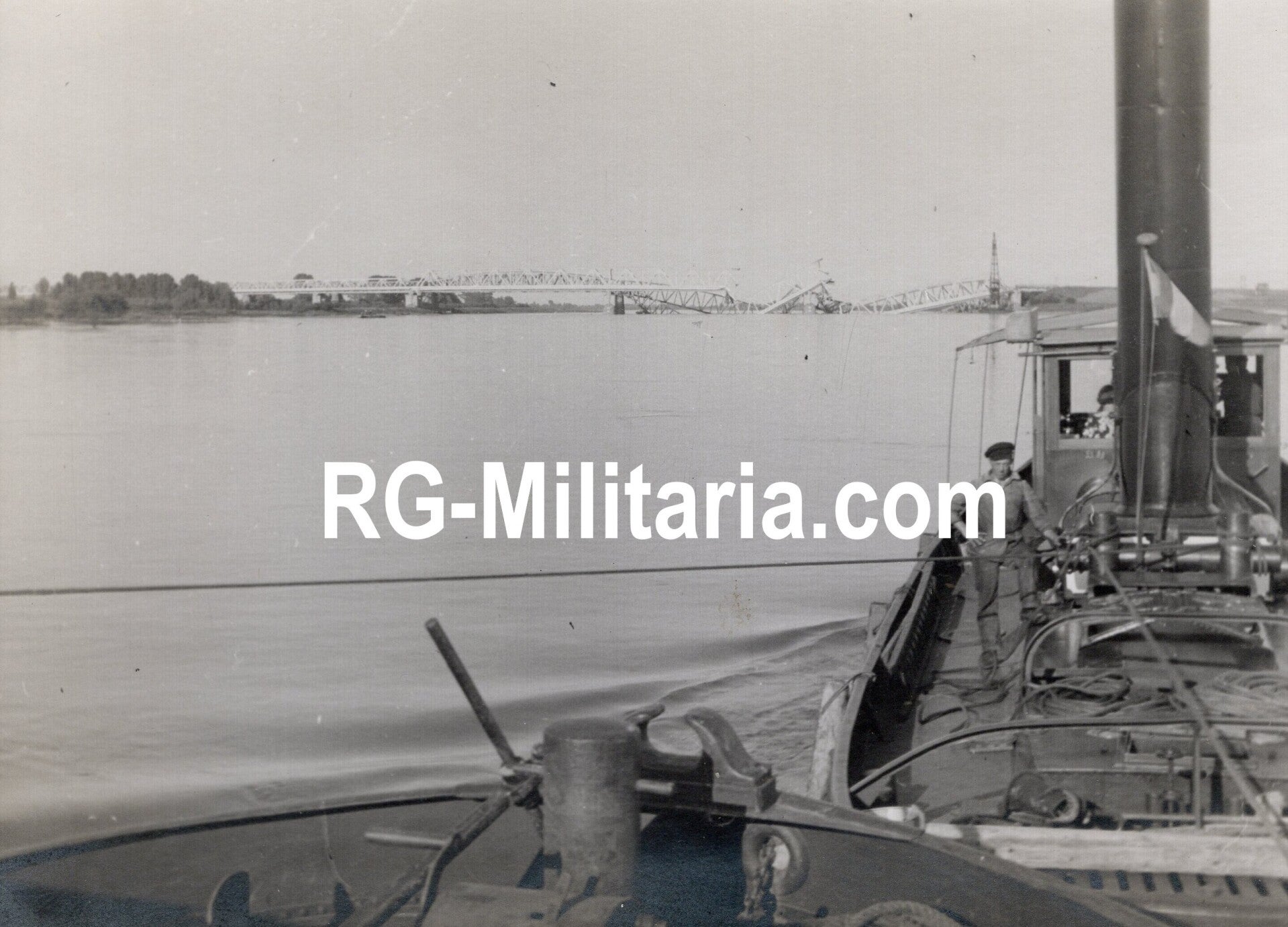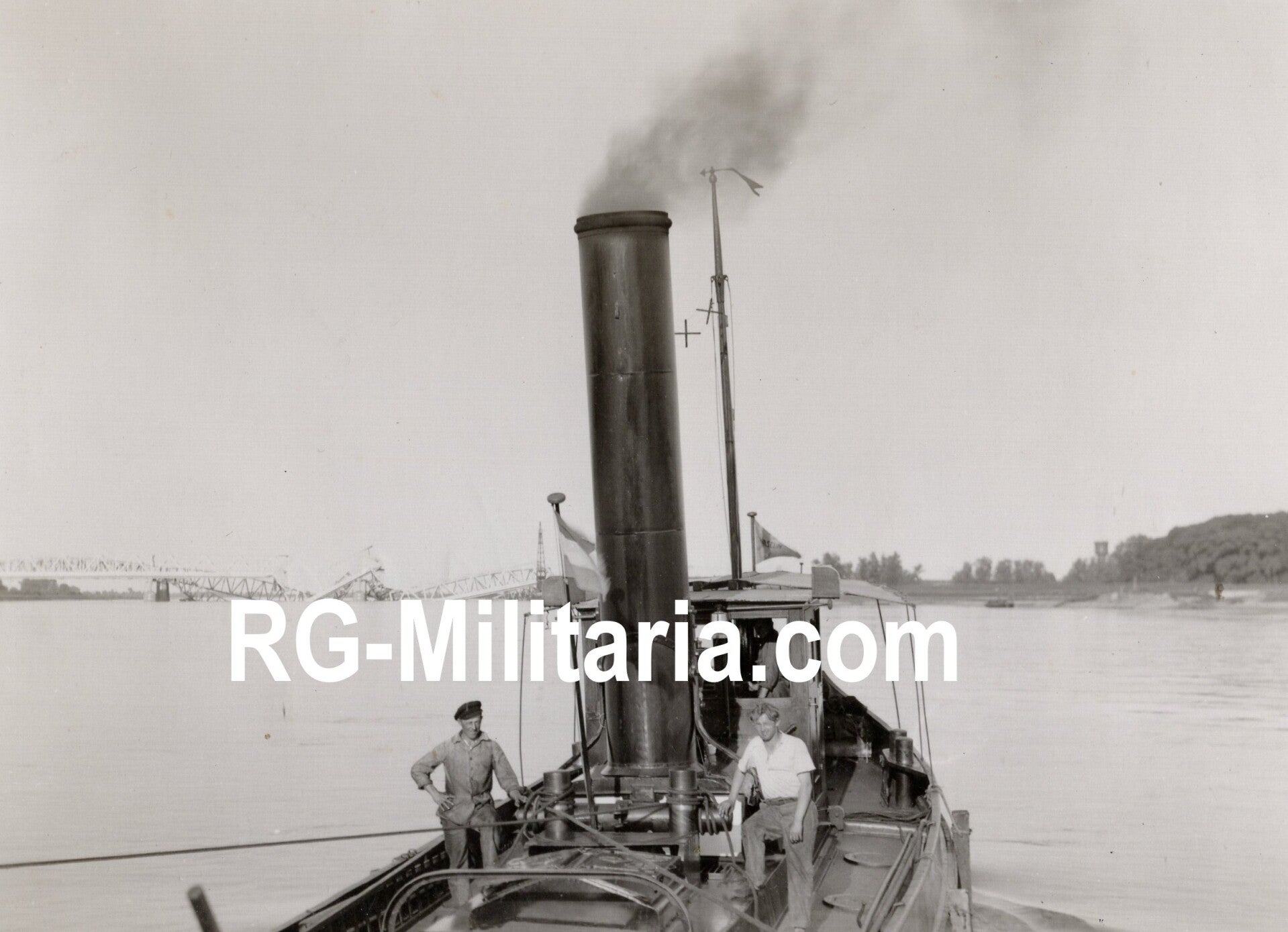 Originele Wo2 Duitse Foto - Duitse militairen op een schip bij de rivier de Maas bij Zaltbommel, Nederland, Mei (1940)
