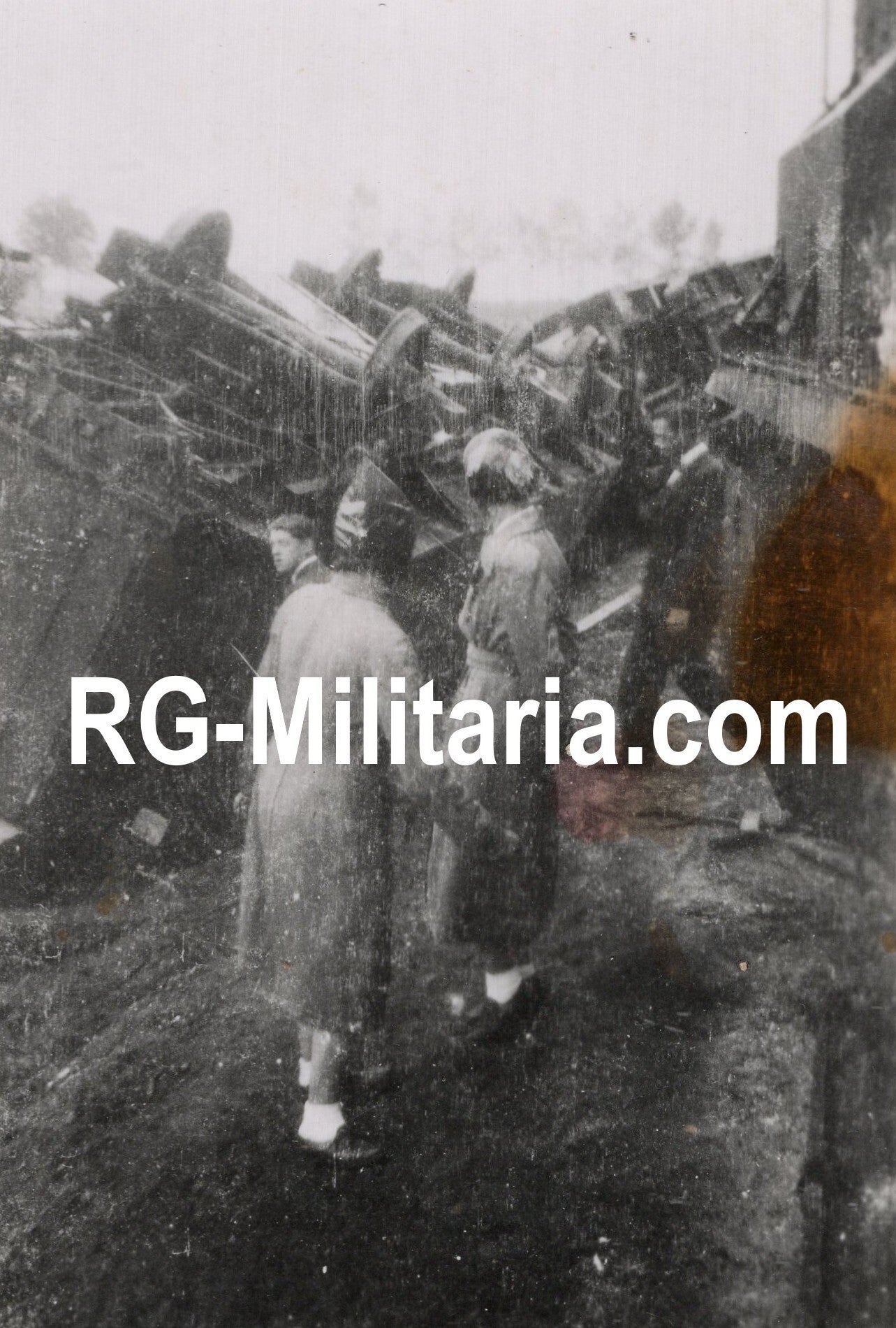 Originele Wo2 Duitse Foto - Nederlandse touristen bezoeken de ontspoorde panzertrein bij Mill, Nederland (1940)