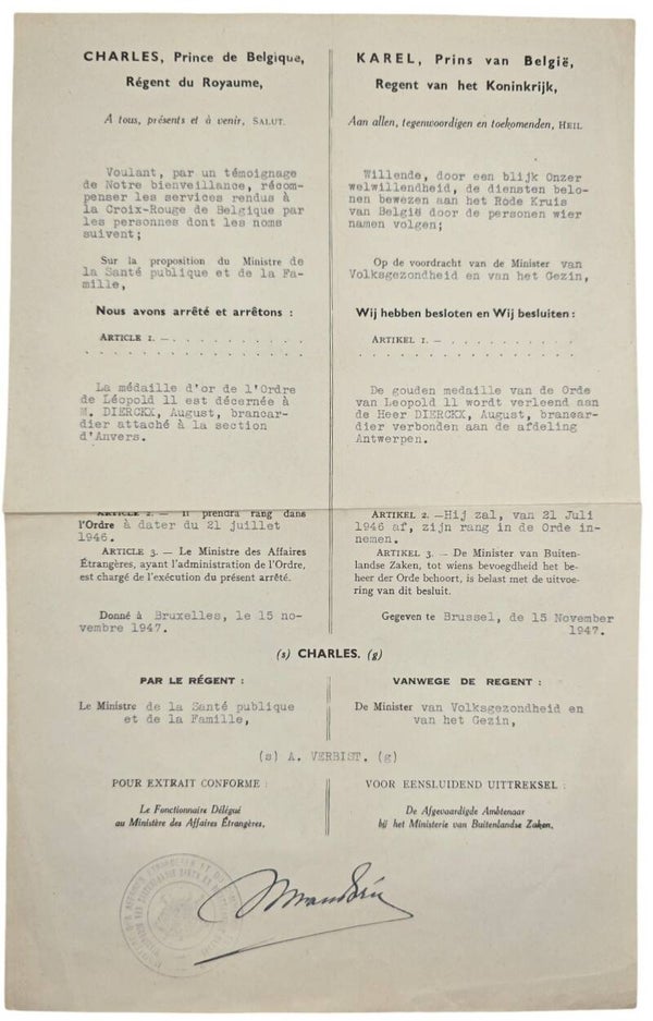 Original WW2 Belgian Document Set - Red Cross worker from Antwerp (1942-1948)
