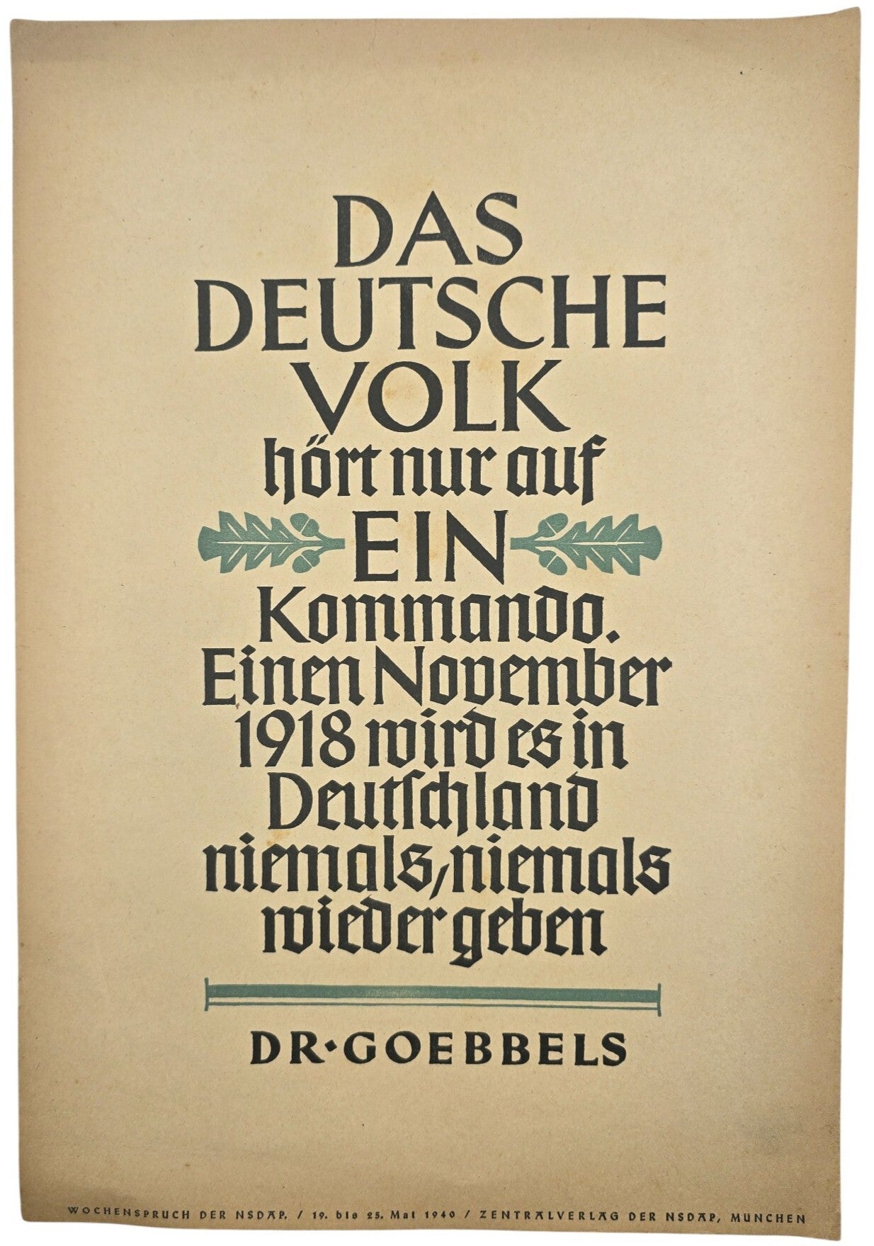 Original WW2 German Poster - NSDAP Wochenspruch folge 19 Mai, Dr. Joseph Goebbels (1940)