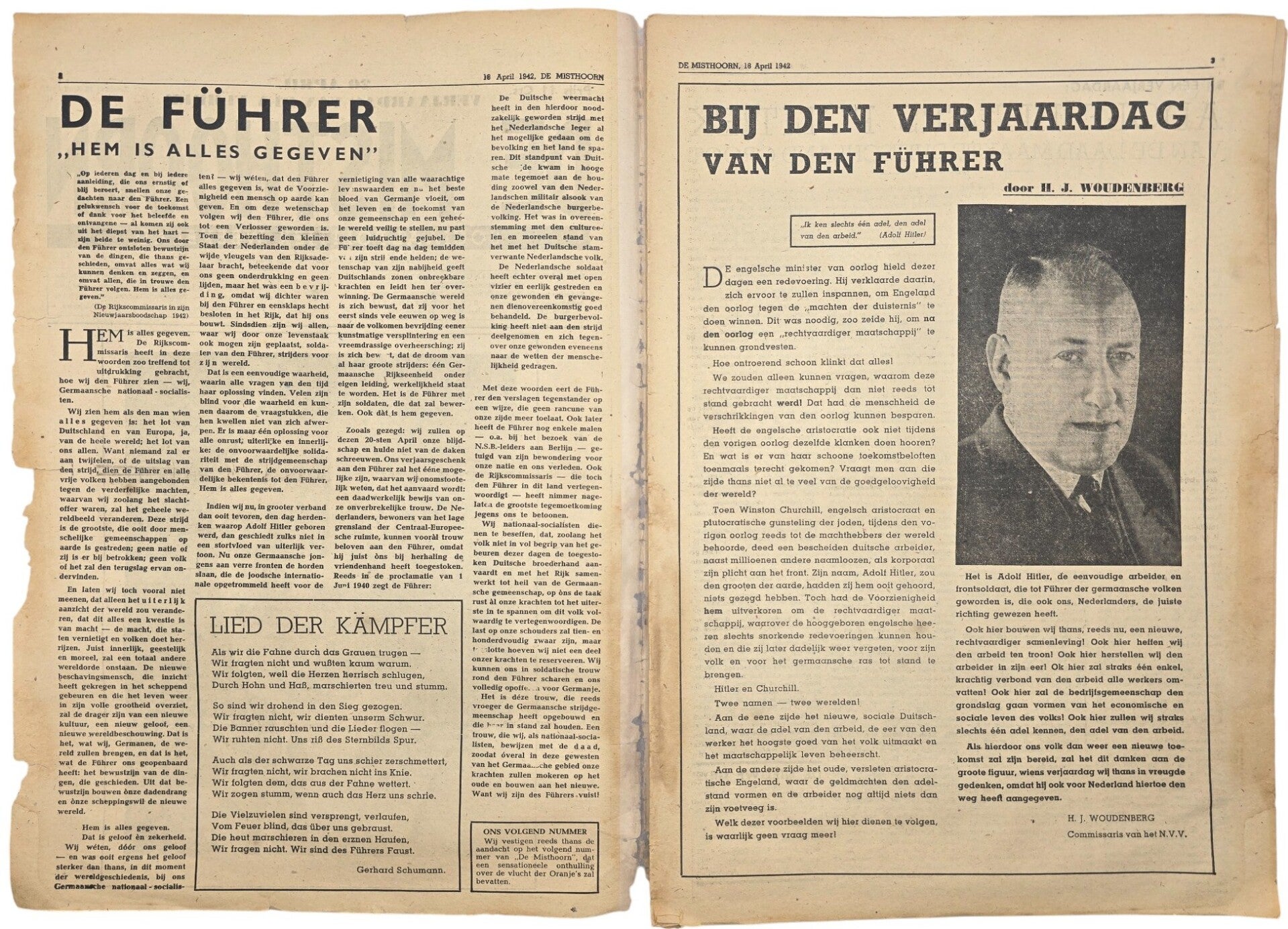 Original WW2 Dutch Antisemitic Newspaper - De Misthoorn, 5th year No. 141, Hitler birthday edition (1942)