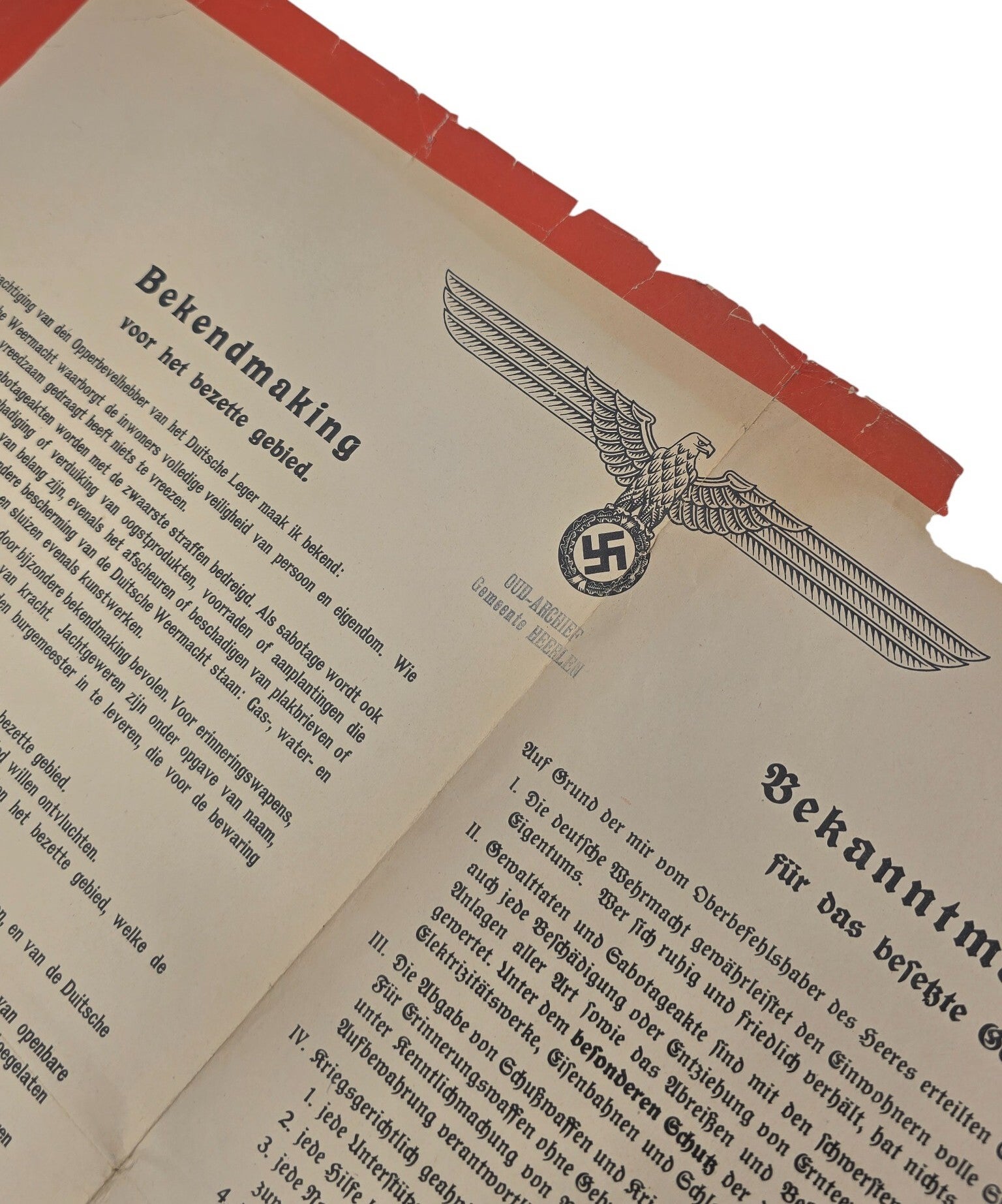 Originele Wo2 Nederlands Duitse Poster - Bekendmaking nieuwe wetten in bezet Nederland, België en Luxemburg, Heeresgruppe (1940)