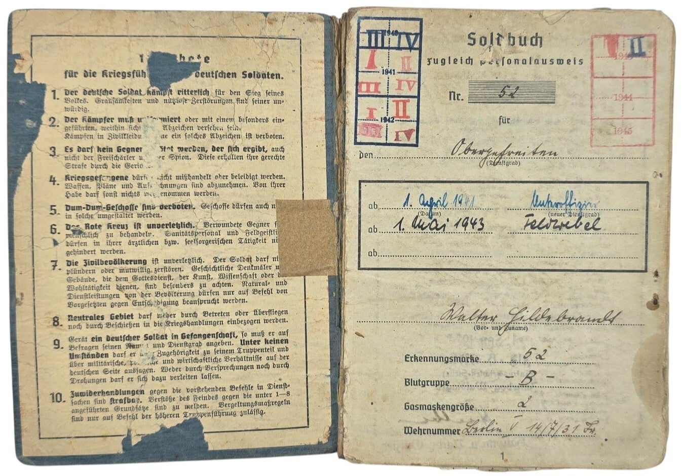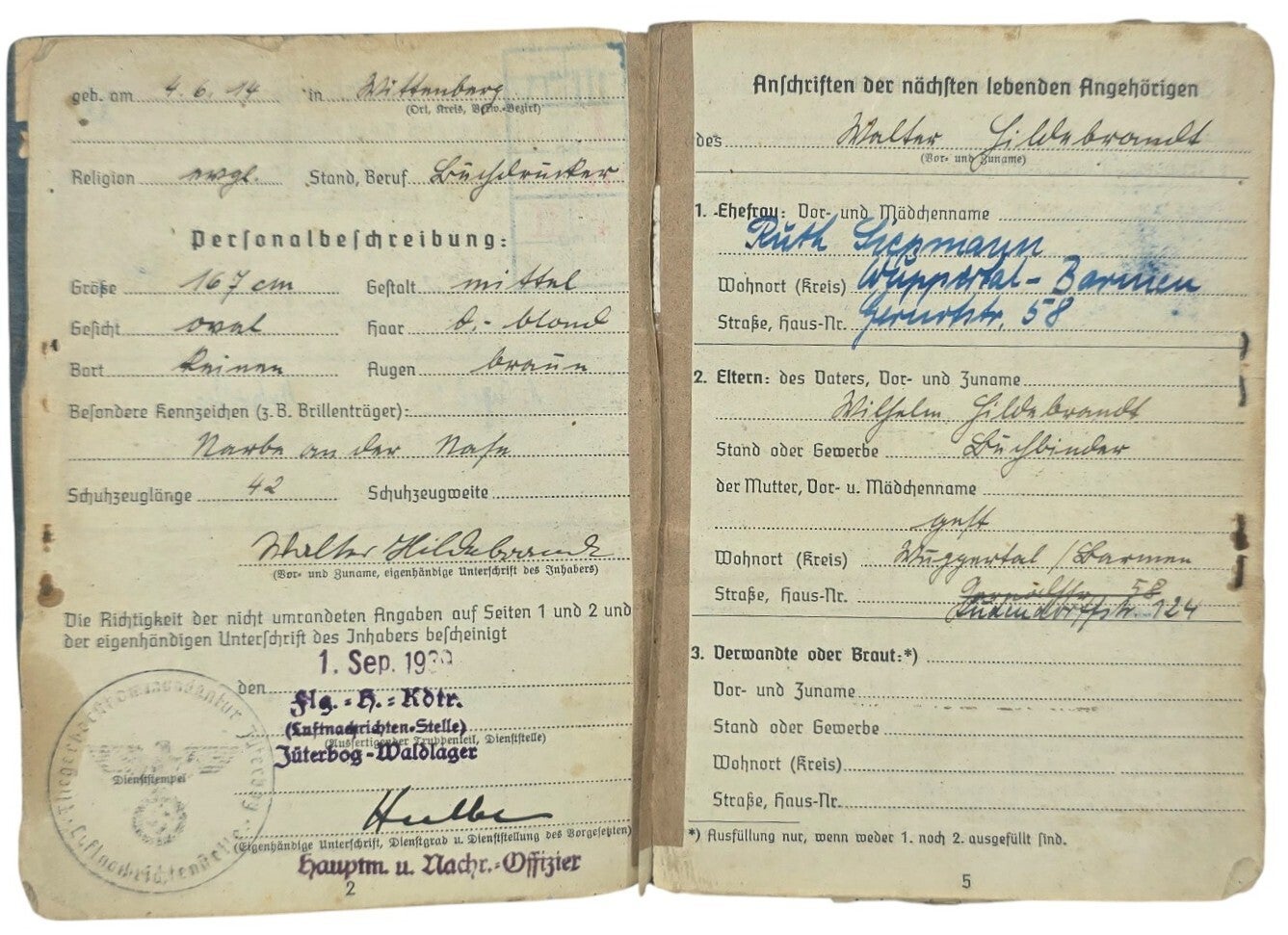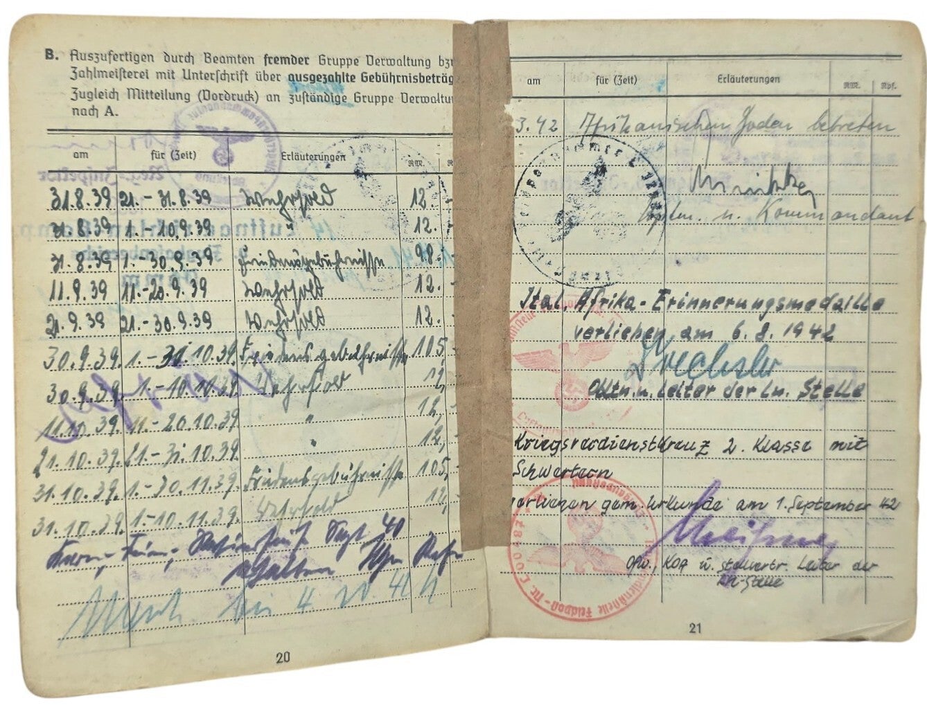 Original WW2 German Document - Luftwaffe Soldbuch Luchtnachrichten Kompanie Jüterbog, Africa medal (1942)