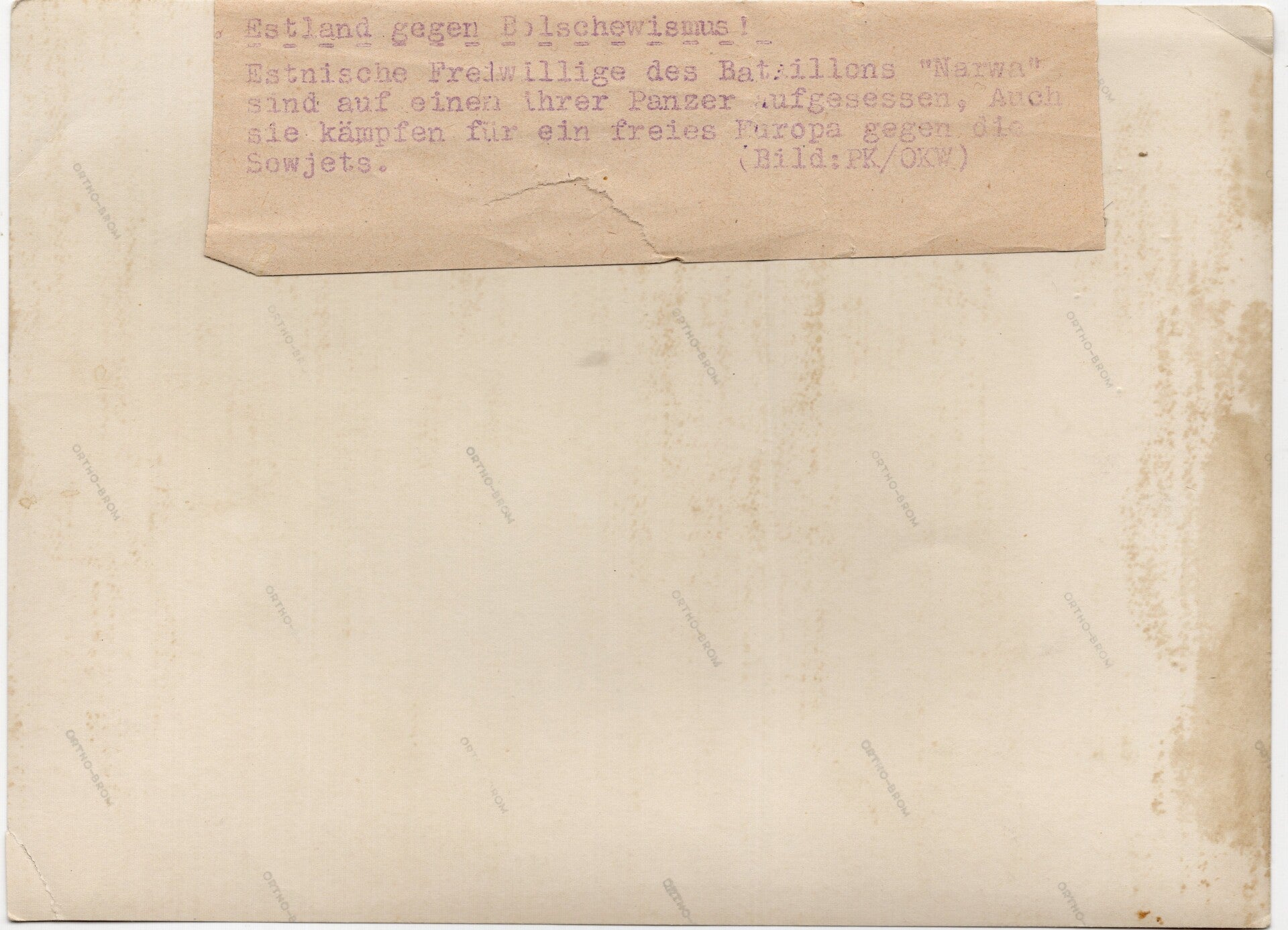 Original WW2 German Waffen SS Press Photo - Estonian Waffen SS Panzer Narwa volunteers against Bolshevism