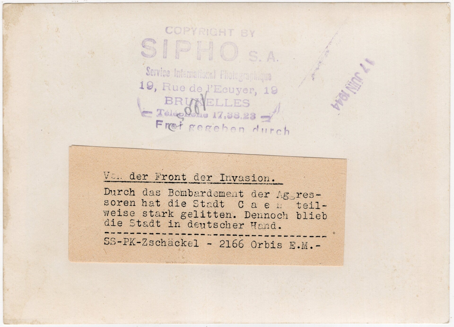 Original WW2 German Waffen SS Press Photo - Destroyed city of Caen, Normandy, Operation Overlord, France (1944)