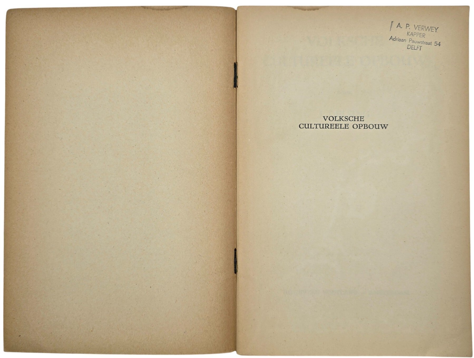 Original WW2 Dutch NSB Collaboration Brochure - Westland serie 3, Volksche Cultureele Opbouw, J. Delsing (1942)