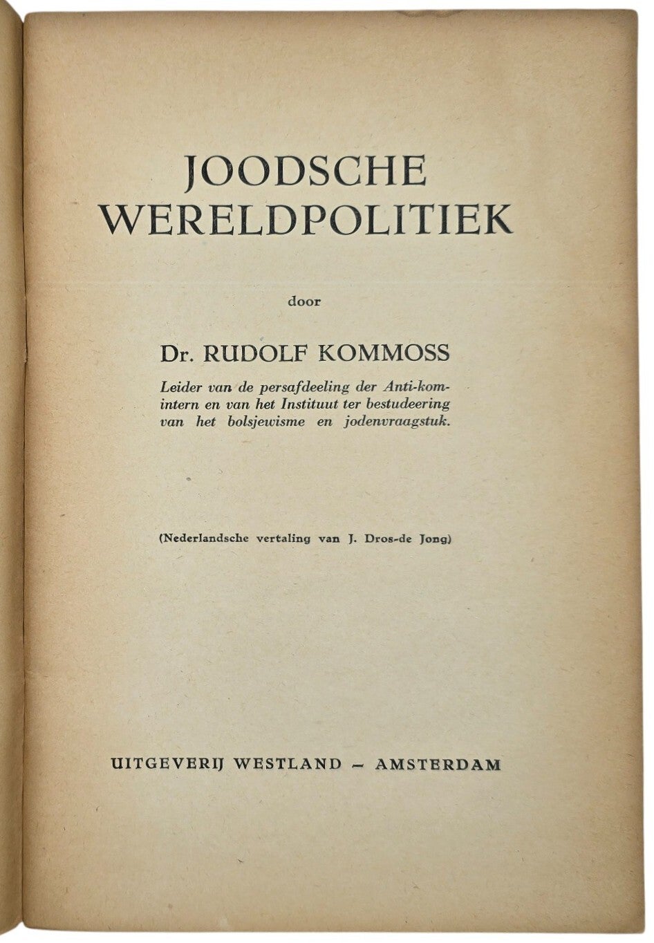 Originele Wo2 Nederlandse NSB Collaboratie Brochure - Westland serie 2, Joodsche Wereldpolitiek, Dr. Rudolf Kommoss (1942)