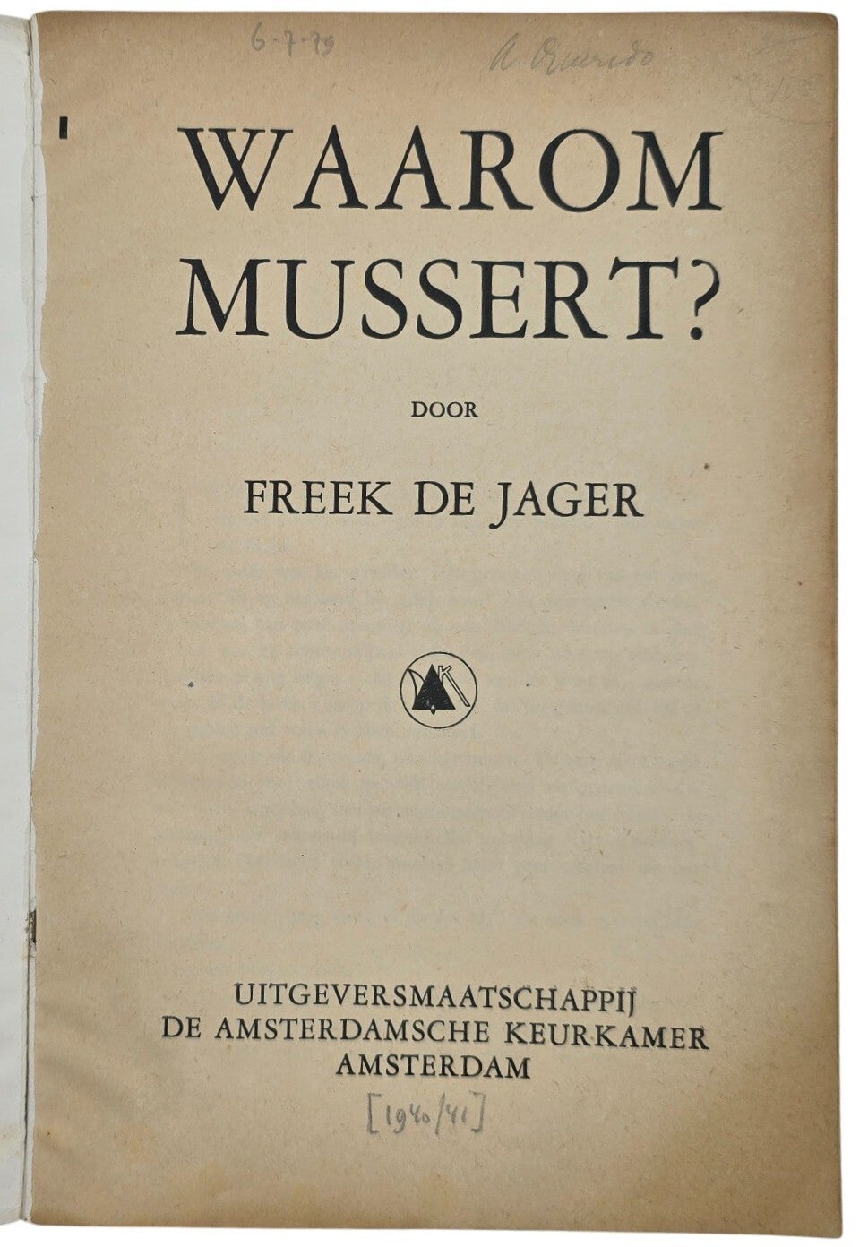 Originele Wo2 Nederlandse Collaboratie NSB Brochure - Waarom Mussert? Freek de Jager (1941)