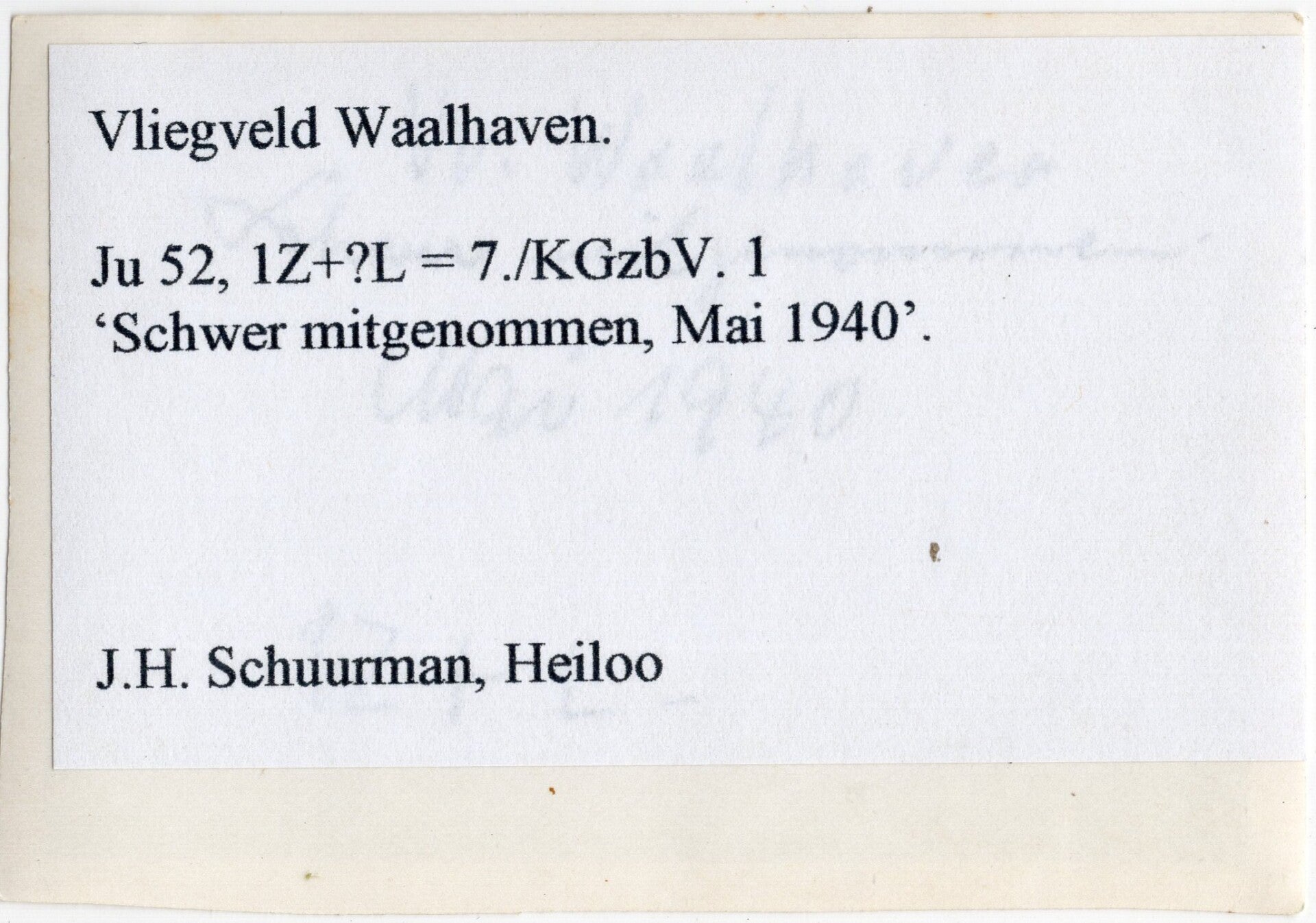 Originele Wo2 Duitse Foto - Vernietigde Junkers Ju 52-vliegtuig op het vliegveld van Rotterdam, Waalhaven, Nederland (1940)