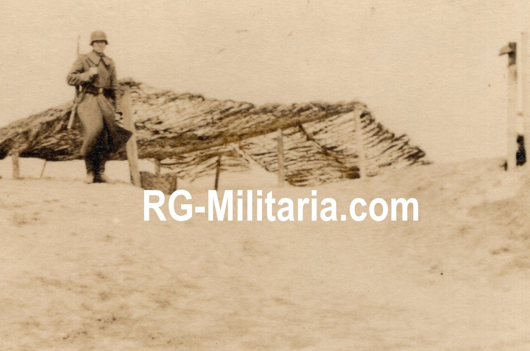 Originele Wo2 Duitse Foto - Duitse militair bij bunker in de Nederlandse duinen, Noorderhaven, Nederland (1943)