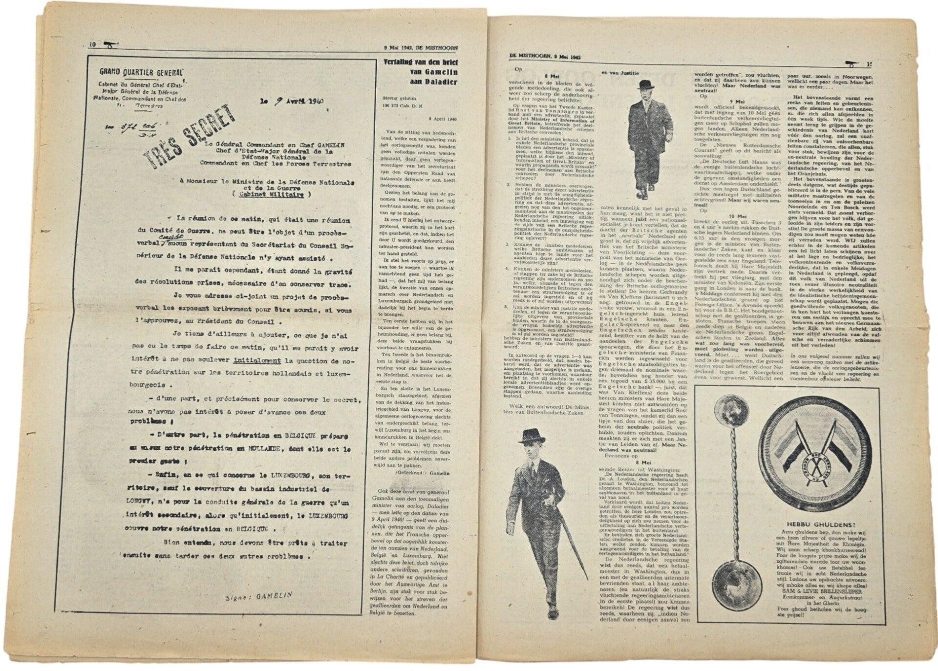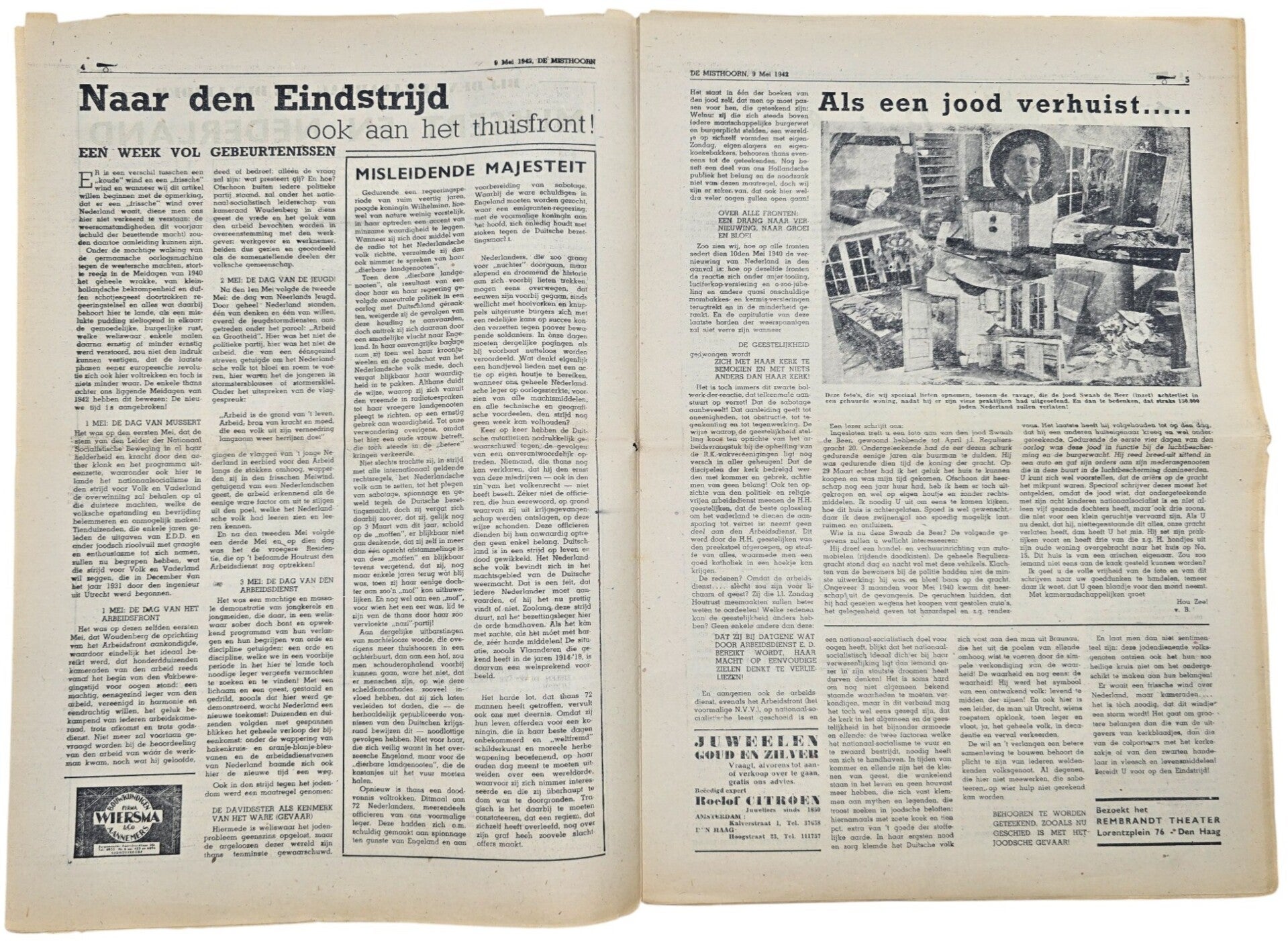 Original WW2 Dutch Collaboration Antisemitic Newspaper - De Misthoorn, 5th year No. 144 (1942)