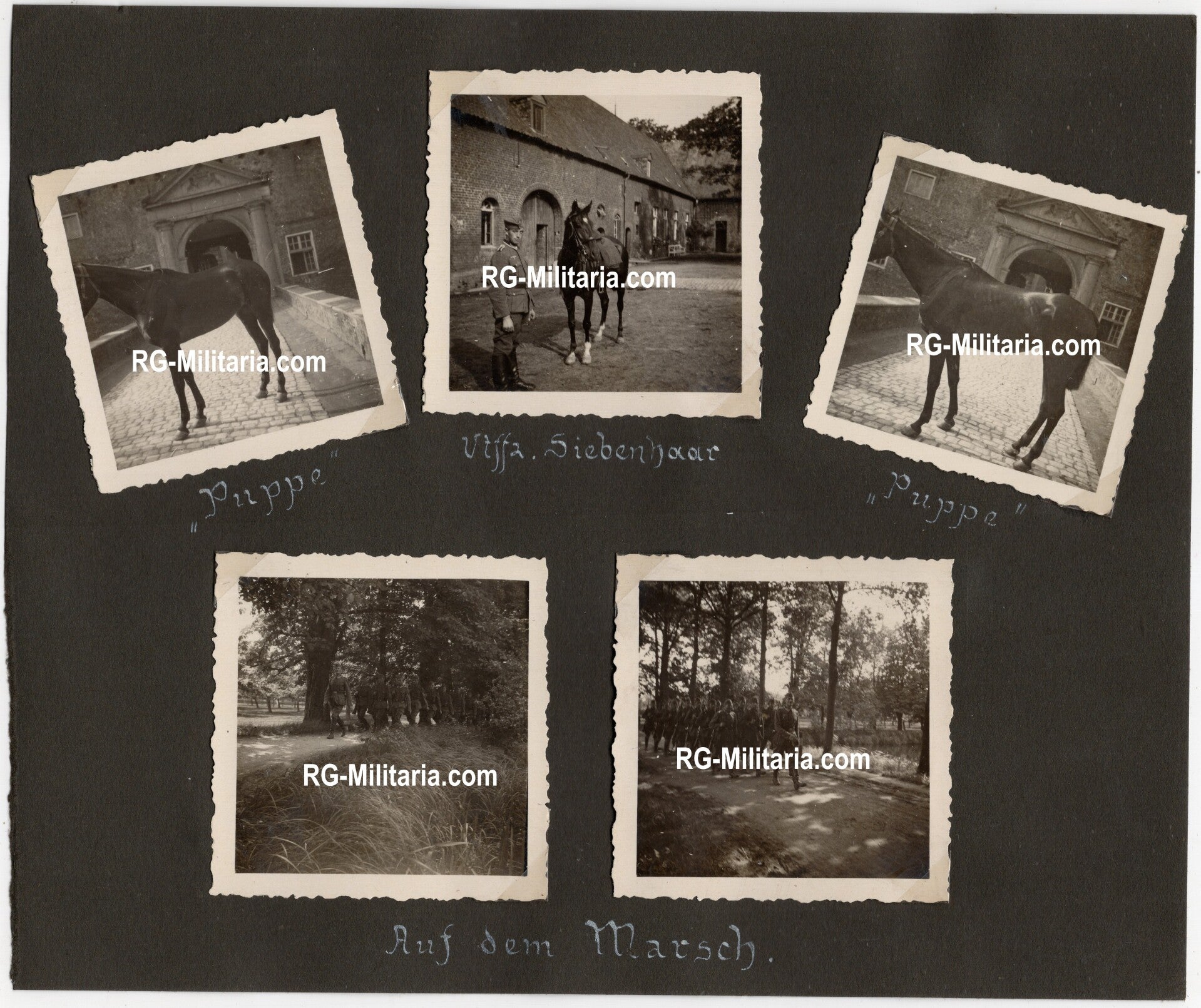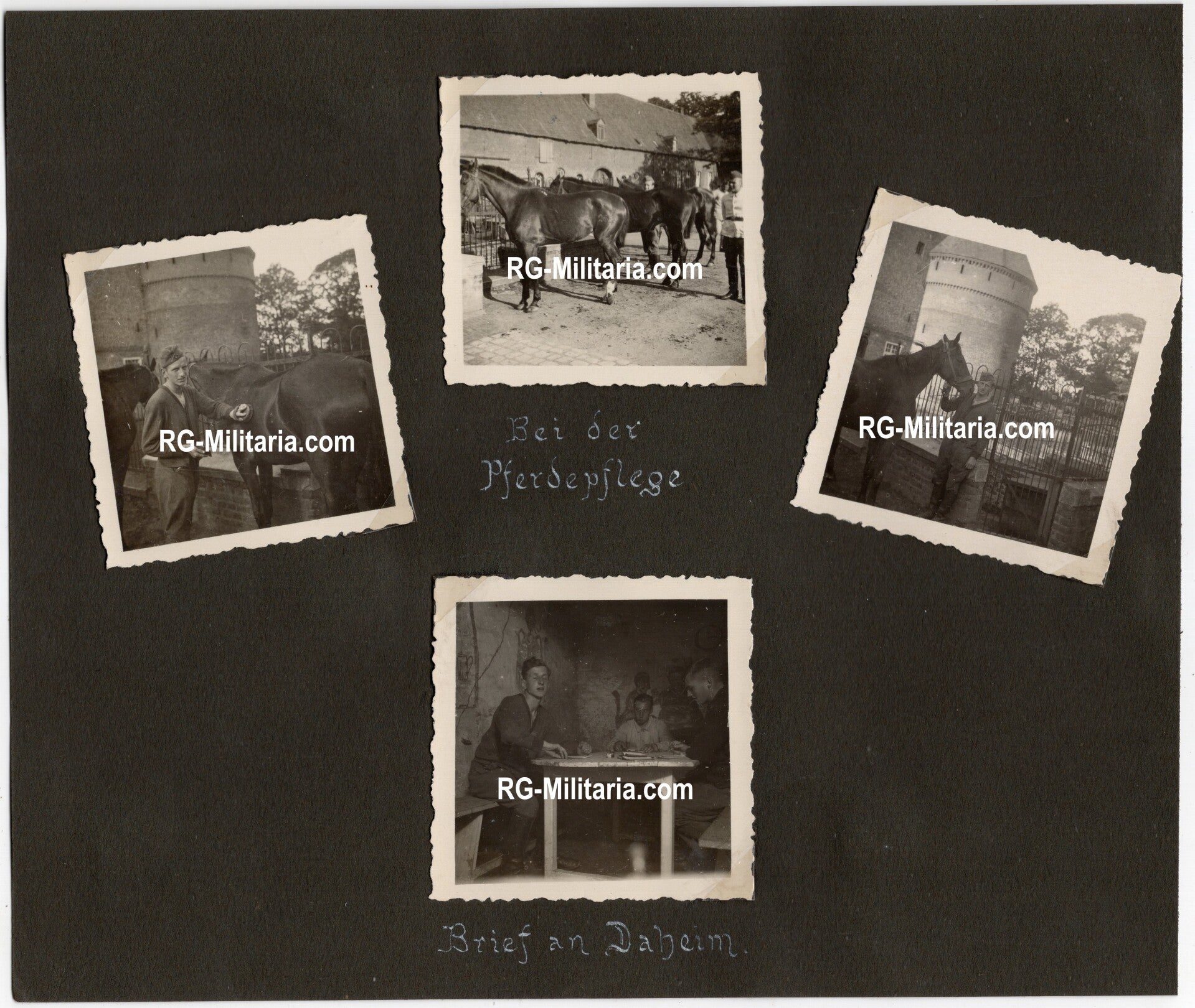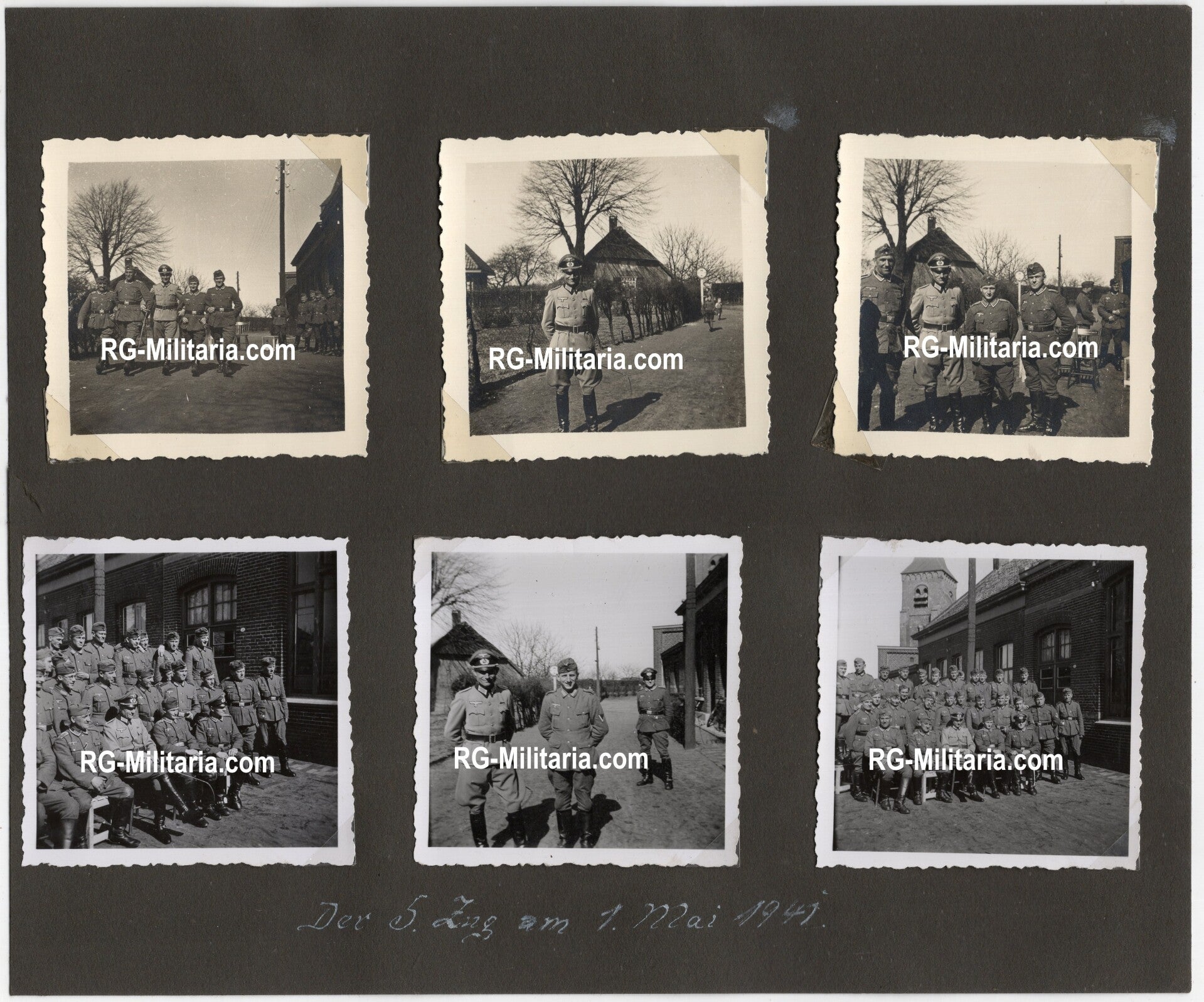 An interesting set of approximately 90 pictures placed on photoalbum pages. This set depicts a group of German soldiers during their time in various locations, including Venlo, Berlin, Enschot, Gennep, Geldern, Bilsen, Tongeren, and Tilburg. This was the 5th Zug of a Wehrmacht unit. Interesting photo series to research!