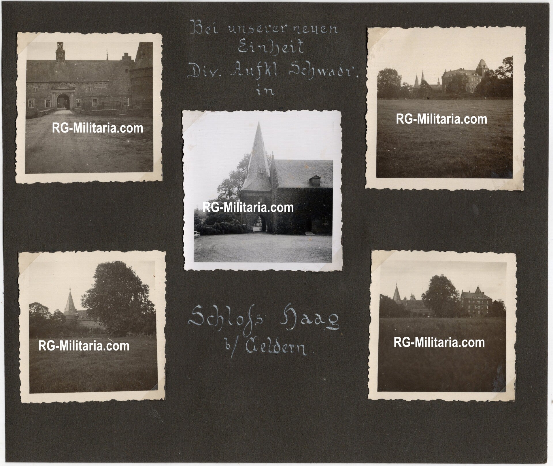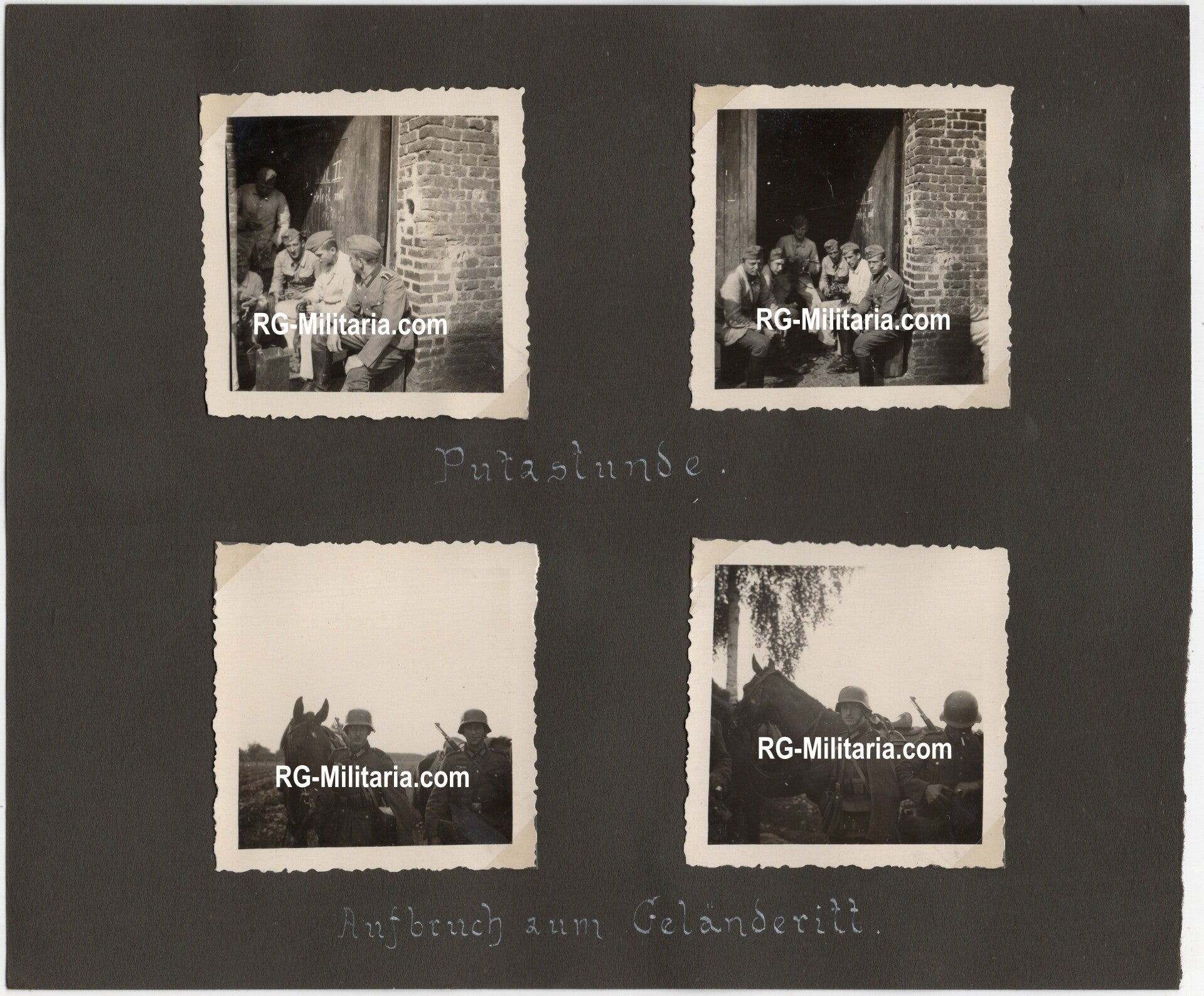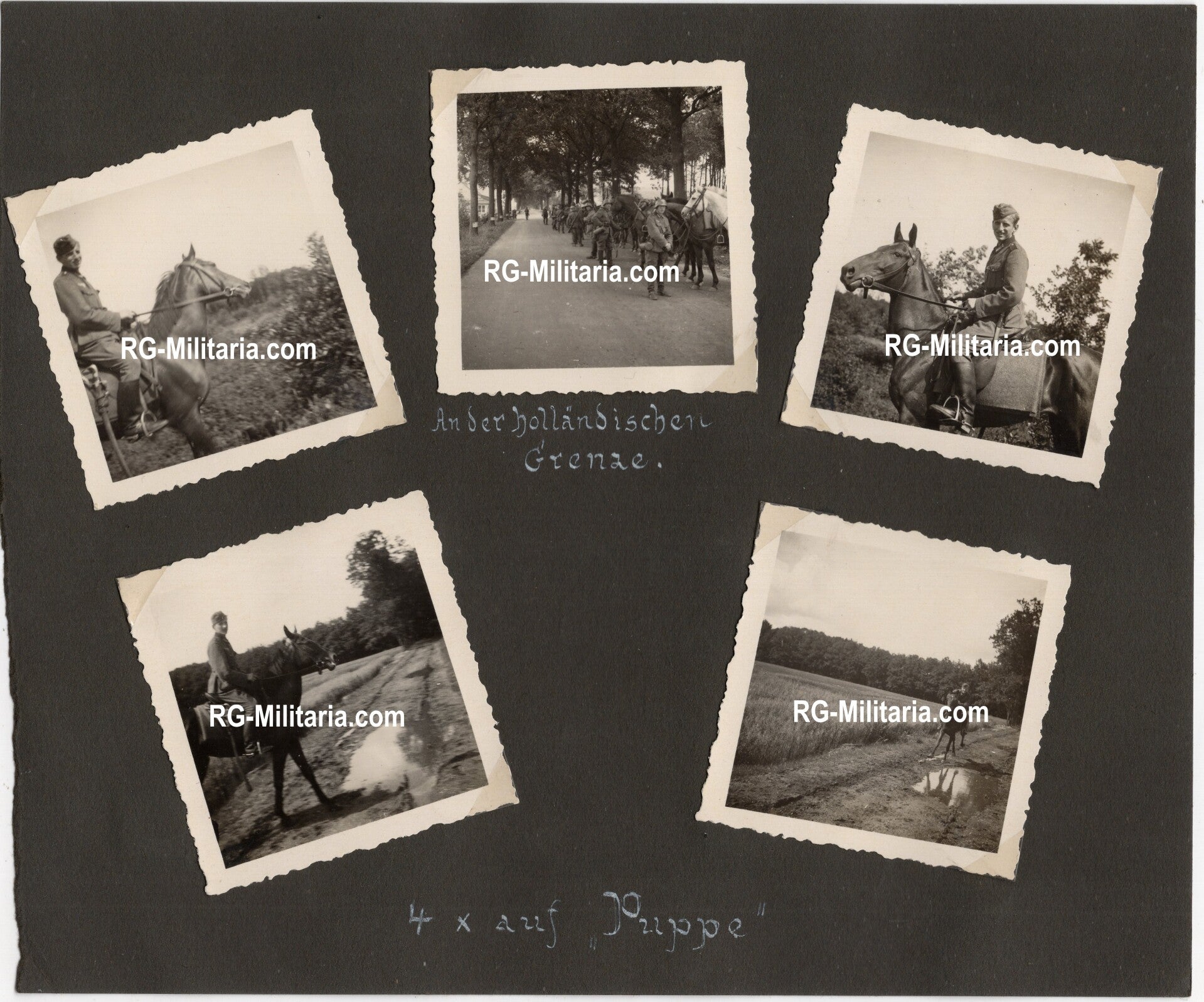 An interesting set of approximately 90 pictures placed on photoalbum pages. This set depicts a group of German soldiers during their time in various locations, including Venlo, Berlin, Enschot, Gennep, Geldern, Bilsen, Tongeren, and Tilburg. This was the 5th Zug of a Wehrmacht unit. Interesting photo series to research!