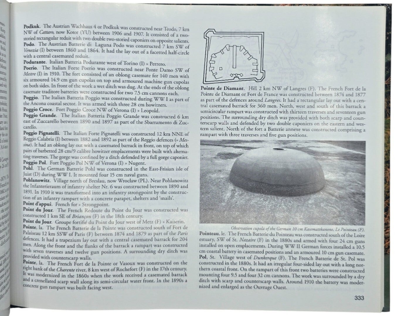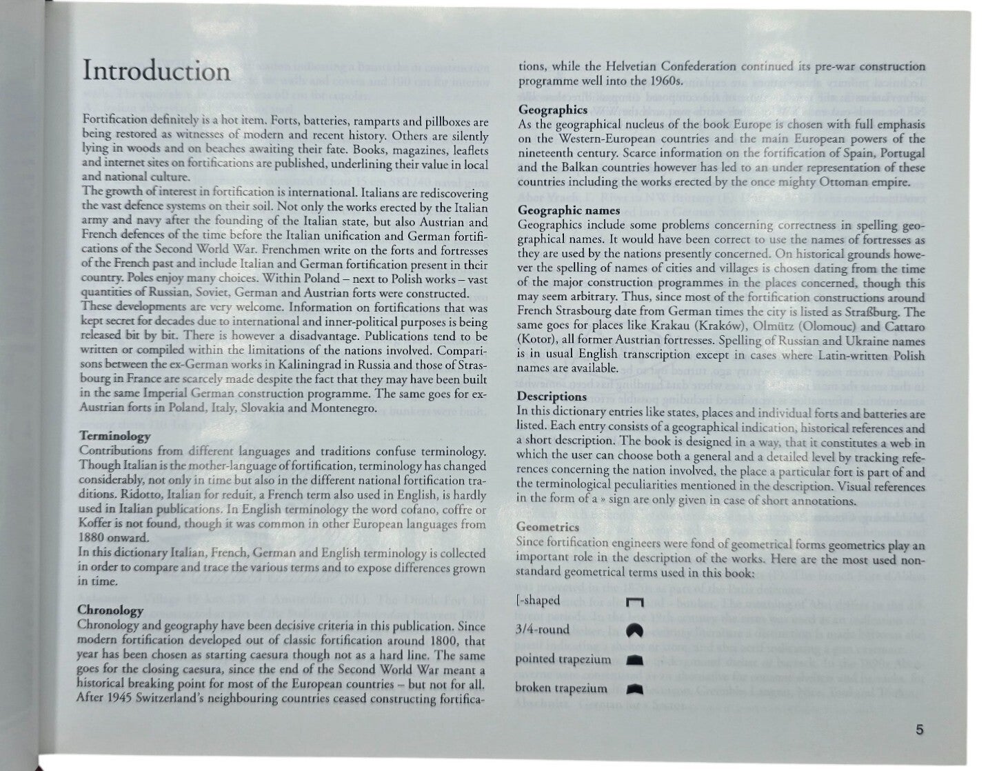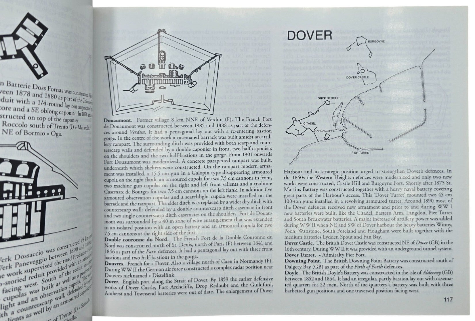 This book is an illustrated reference work on European fortifications from the period 1800–1945. It is structured as a dictionary and explains terms, structures, and concepts related to modern fortification and military architecture. The entries are supported by photographs and drawings and focus on defensive works across different European countries. The book is intended as a reference tool for readers interested in fortification terminology and historical defensive structures.