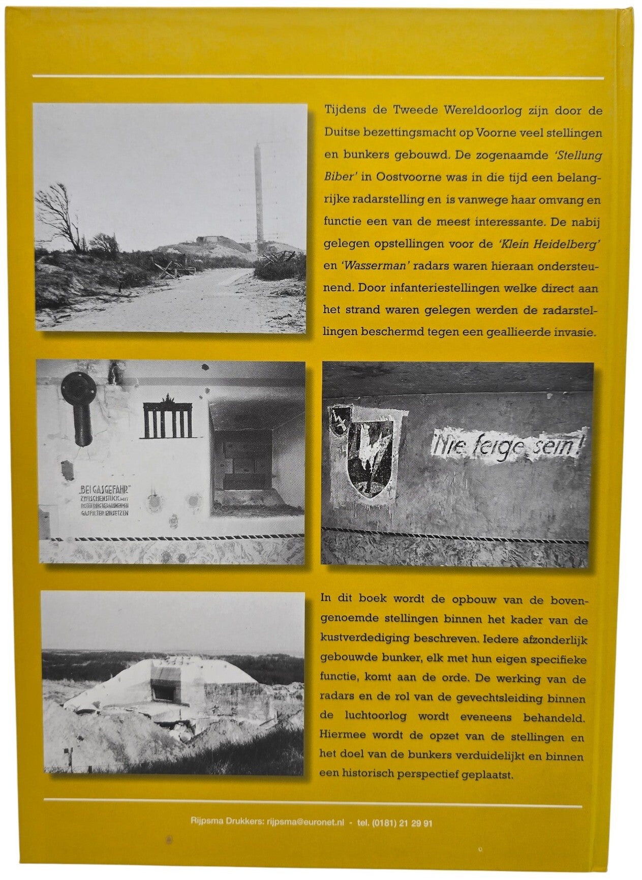 Dit boek behandelt de Duitse radarstelling “Biber” op Voorne, onderdeel van de kustverdediging binnen de Atlantikwall. Het beschrijft de inzet van radar voor lucht- en zeeobservatie, de technische opbouw van de installatie en de samenhang met andere verdedigingswerken. Aan de hand van historische foto’s, tekeningen en archiefonderzoek wordt de rol van deze radarstelling tijdens de Tweede Wereldoorlog gedocumenteerd.