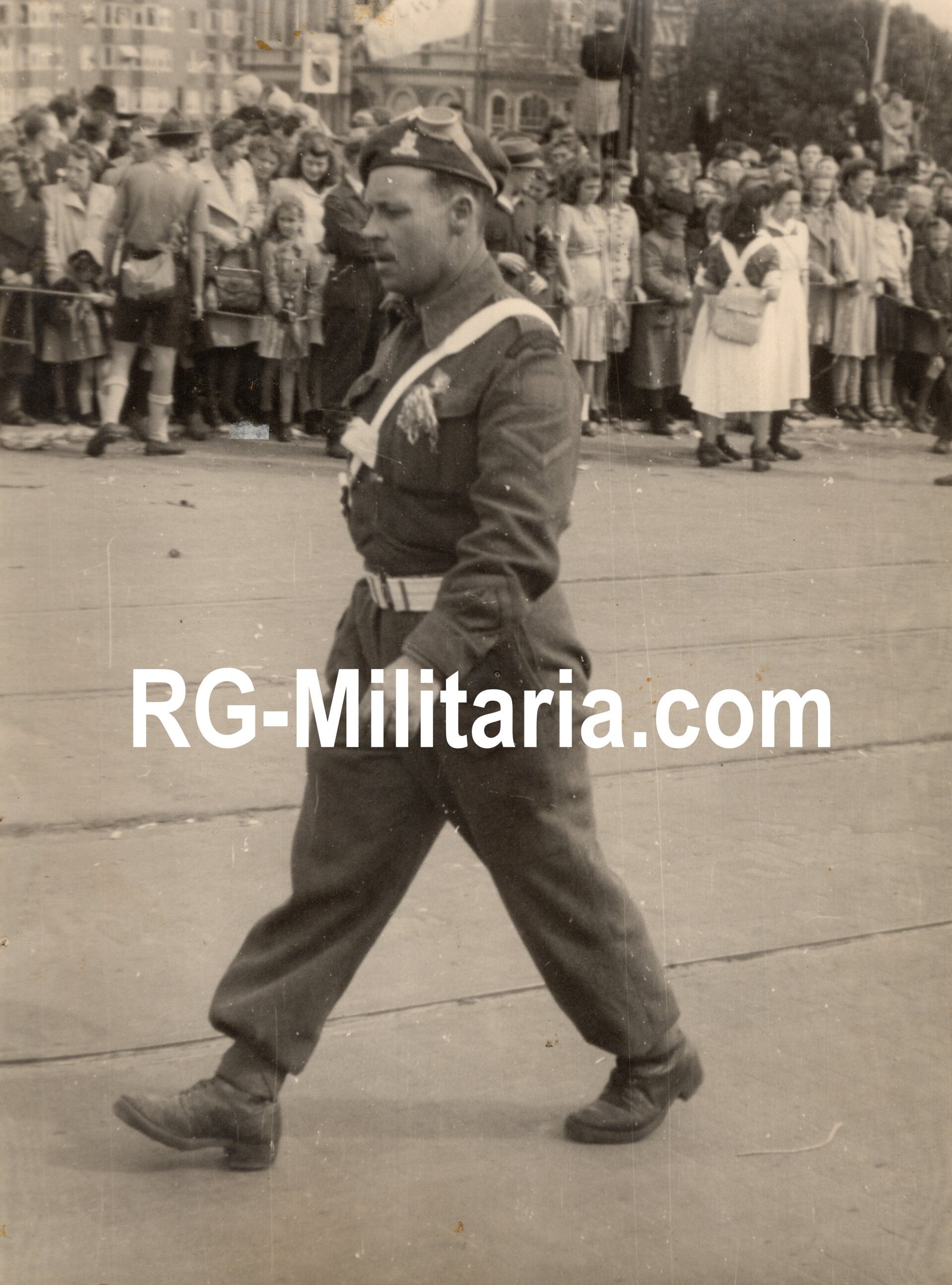 Original WW2 Dutch Liberation Press Photo - Canadian troops enter Amsterdam, Holland (1945)